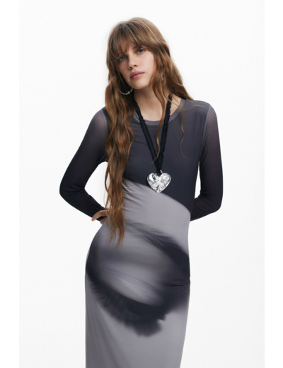 Affirmez votre style avec cette robe longue à manches longues signée Desigual, où l’art rencontre la mode dans un design unique de portrait en bas. Une pièce qui allie élégance et originalité pour sublimer votre silhouette en toute occasion.