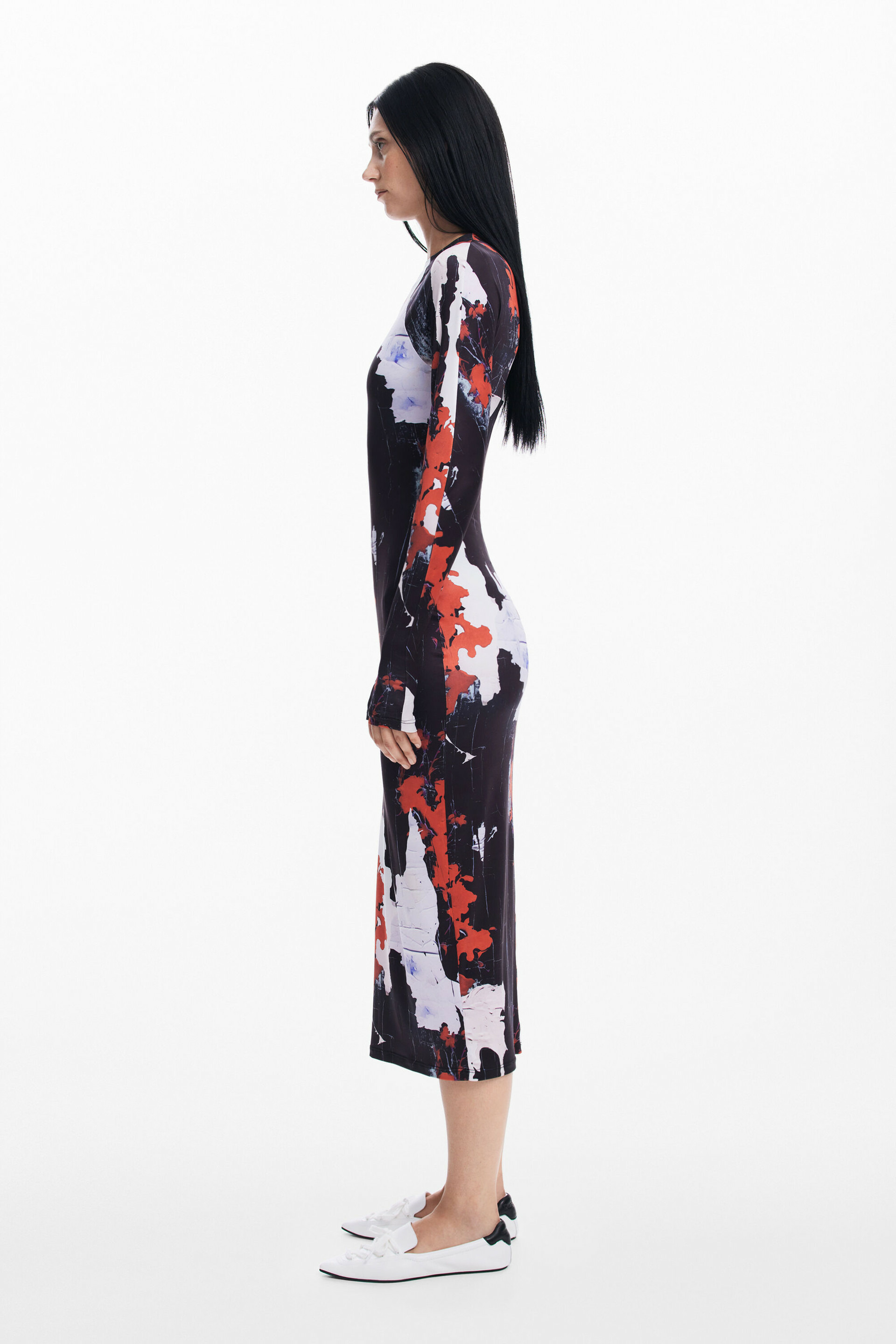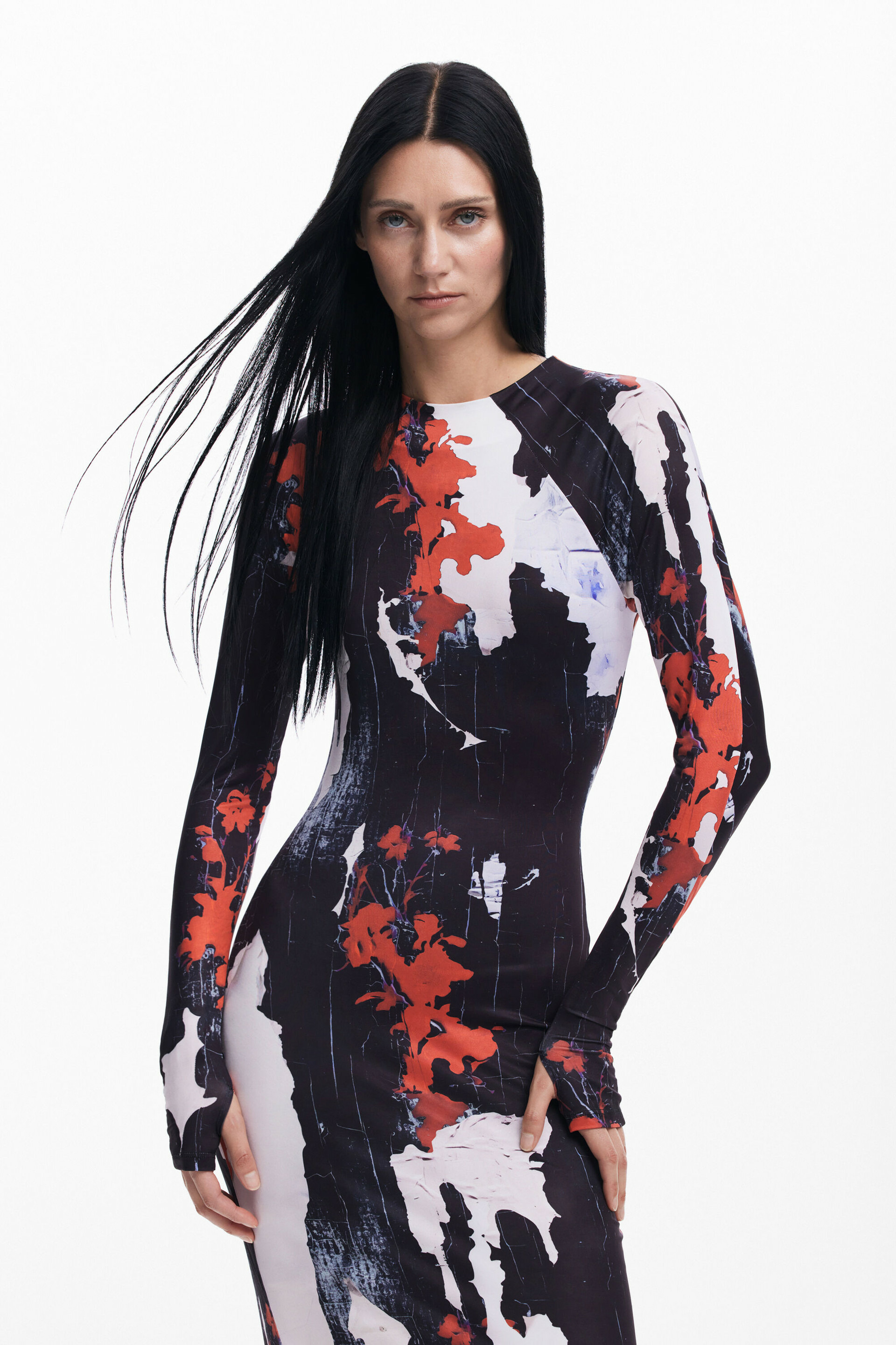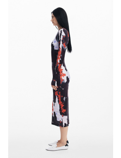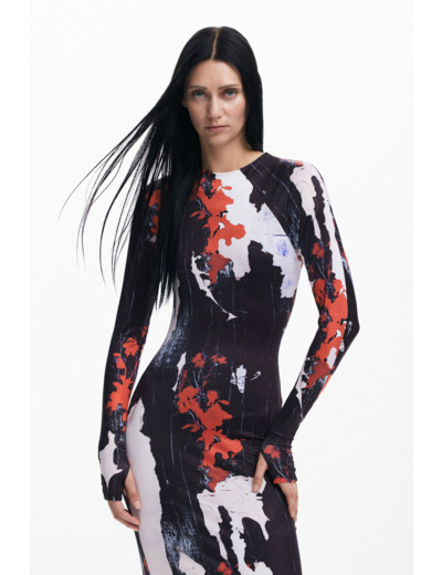 Affirmez votre style avec cette robe midi slim à manches longues, signée Desigual et conçue par Maitrepierre. Un imprimé unique qui transforme chaque mouvement en une déclaration de caractère.