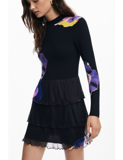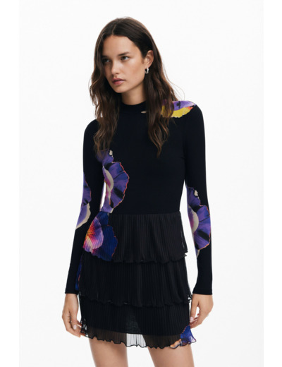 Conçue par Desigual, cette robe associe un imprimé de fleurs de lys raffiné à une coupe moderne et féminine. Sa jupe à volants apporte légèreté et fluidité, idéale pour une allure chic en toute occasion, du bureau à une soirée décontractée. Le design long sleeve équilibre parfaitement la silhouette, offrant une touche sophistiquée.