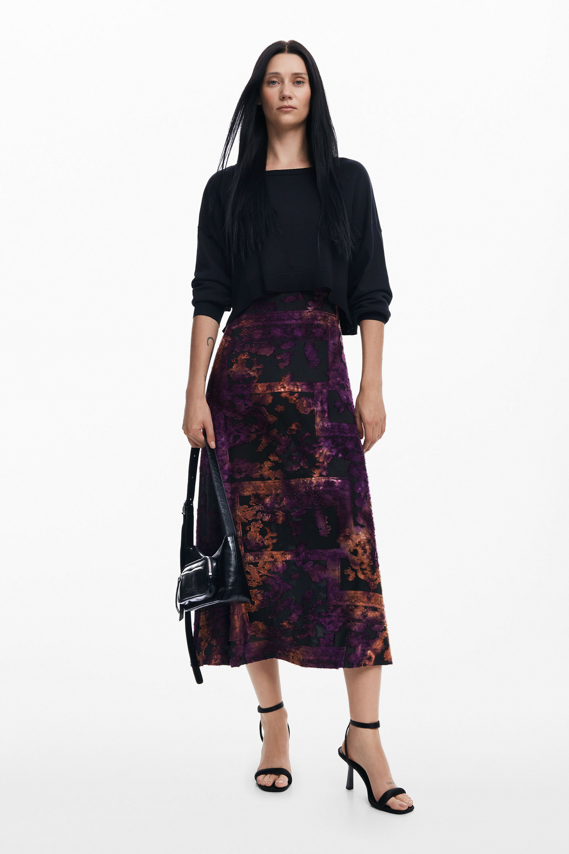 Réponse. Elle présente une coupe midi fluide qui épouse la silhouette sans la contraindre, offrant élégance et confort.