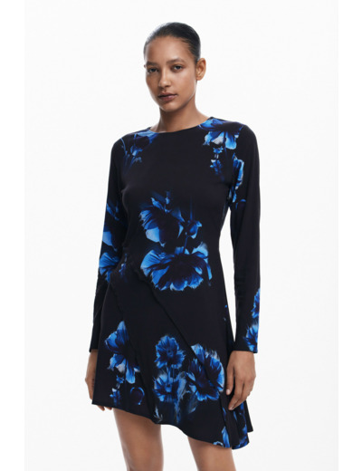 Affichez une élégance naturelle avec cette robe courte à manches longues signée Desigual, où l’imprimé floral rencontre une jupe à coupe asymétrique pour un style unique et moderne. Parfaite pour sublimer vos journées comme vos soirées, elle incarne la féminité audacieuse.