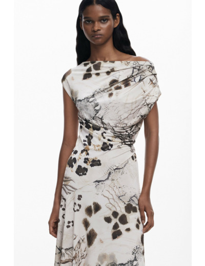 Osez l’audace avec cette robe 2 en 1 qui allie élégance et confort. Son imprimé animalier et son ourlet asymétrique apportent une touche sauvage et moderne à votre silhouette.