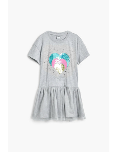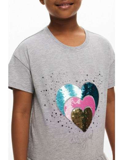 Laissez-vous séduire par cette robe courte qui allie légèreté et éclat. Son imprimé cœur et ses strass apportent une touche romantique et moderne à votre silhouette.