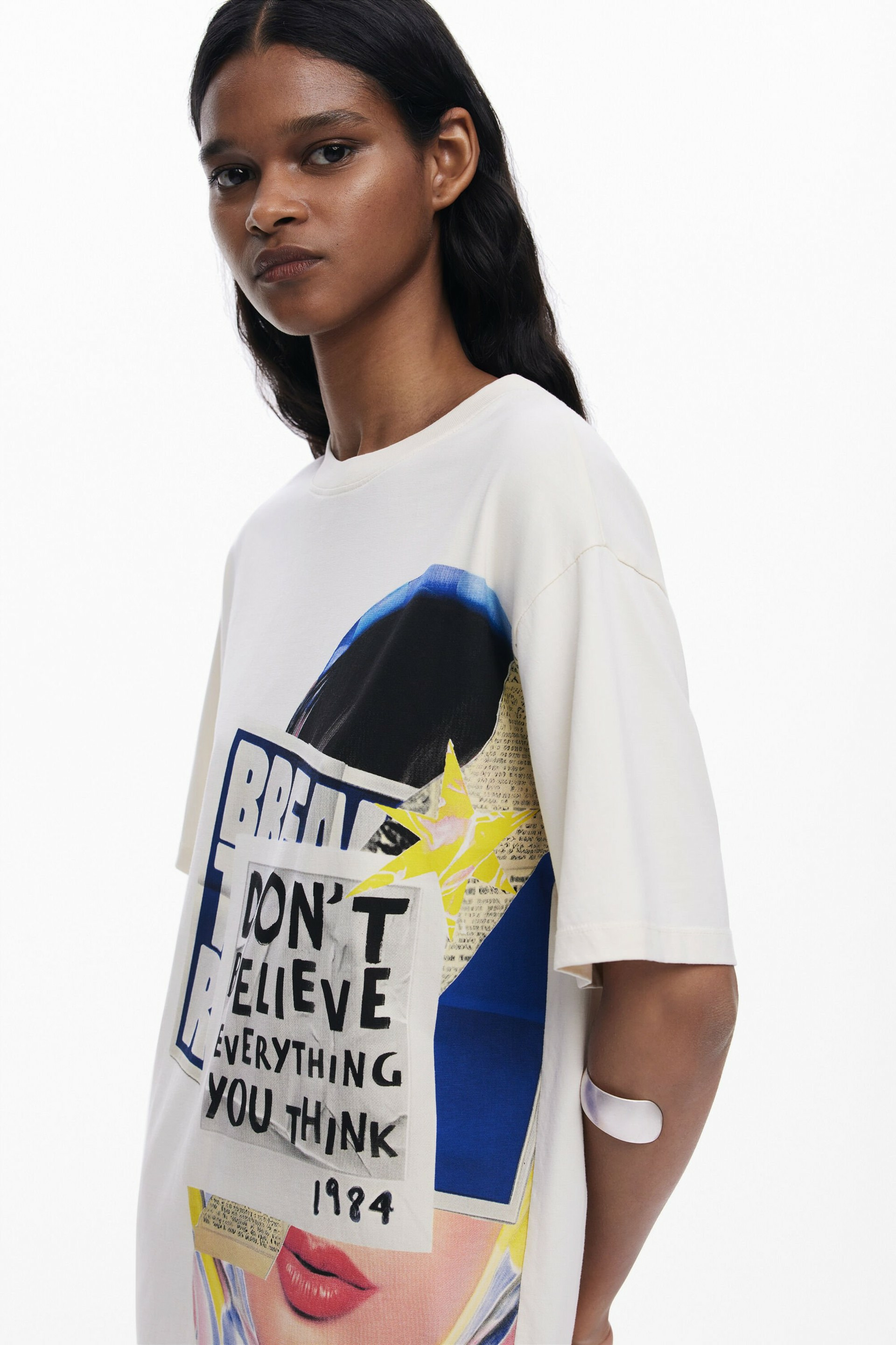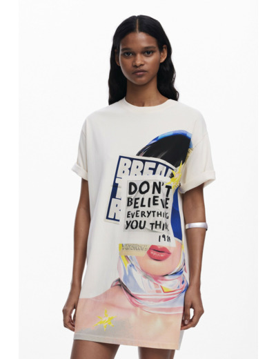 Affichez votre audace avec cette robe courte t-shirt signée Desigual, où l’art rencontre la mode dans un imprimé visage féminin unique. Une pièce qui transforme un basique en une déclaration de style affirmée.