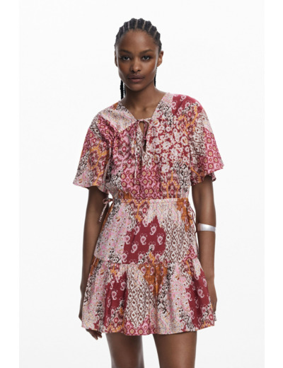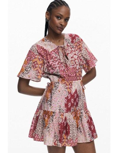 Laissez-vous séduire par cette robe courte à la coupe ample qui allie confort et élégance décontractée. Son décolleté en V et ses manches courtes style papillon apportent une touche féminine et aérienne, sublimée par un imprimé bohème unique signé Desigual.