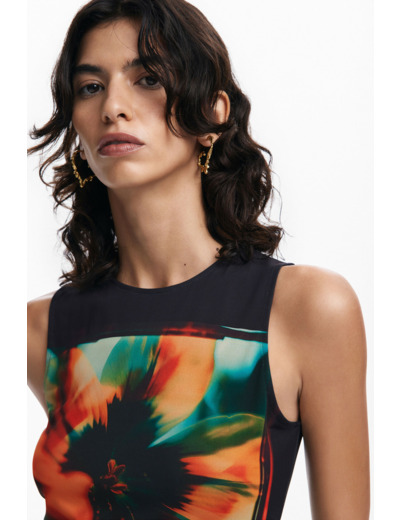 Affirmez votre style avec cette robe midi sans manches signée Desigual, où l’élégance florale rencontre une coupe asymétrique audacieuse. Une pièce qui capte les regards et sublime chaque mouvement.