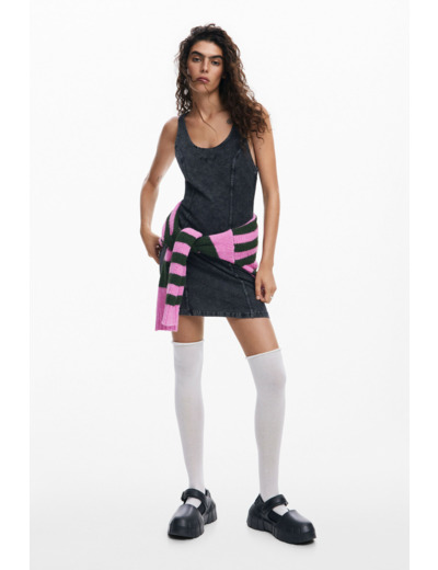 Conçue par Desigual, cette robe sans manches mise sur un col rond classique qui équilibre parfaitement son allure casual. Le denim délavé apporte une touche vintage et authentique, idéale pour un look effortless chic. Facile à associer, elle s’adapte aussi bien à vos baskets qu’à vos sandales préférées.