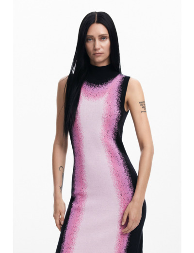 Sublimez votre silhouette avec cette robe midi à col montant, où le dégradé de couleurs signé Maitrepierre apporte une touche d’originalité et de modernité. Une pièce unique qui allie élégance et audace pour toutes vos occasions.