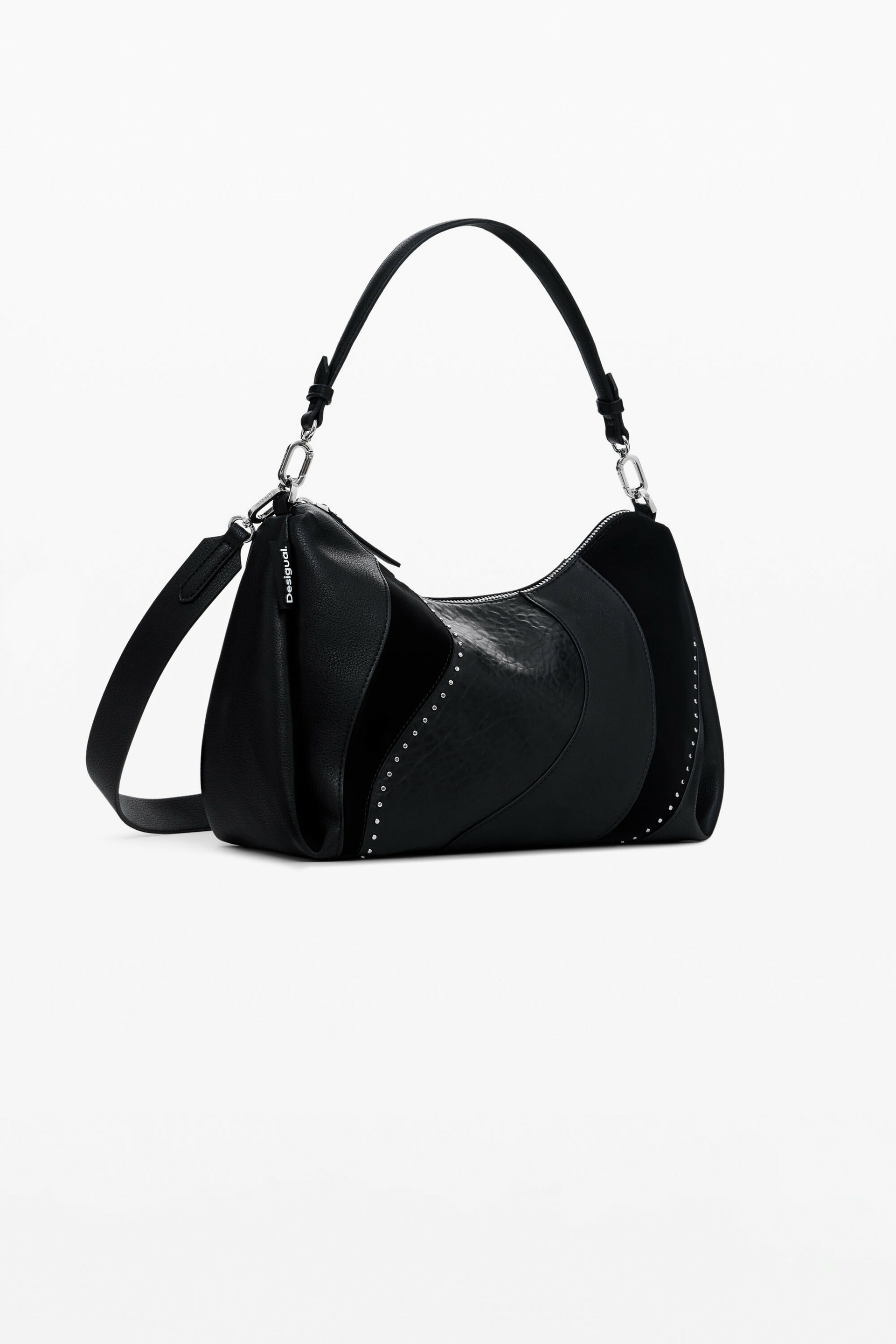 Conçu par Desigual, ce sac mêle originalité et fonctionnalité. Son tissu effet cuir apporte une touche sophistiquée tandis que le motif ondulé crée un jeu de textures qui capte le regard. Plusieurs poignées permettent de le porter à la main ou à l’épaule, selon votre humeur et vos besoins. Les multiples poches internes et externes organisent vos essentiels sans compromis sur l’esthétique.