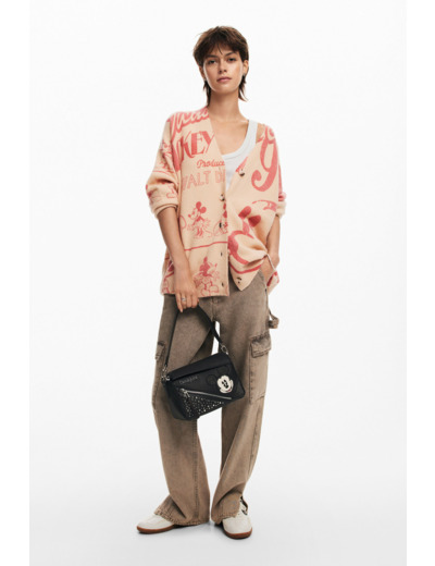 Affichez un style audacieux et décalé avec ce sac bandoulière moyen en tissu effet cuir, orné de clous métallisés, de broderies raffinées et du patch iconique de Mickey Mouse. Une pièce unique qui allie esprit streetwear et touche Disney pour sublimer vos tenues au quotidien.