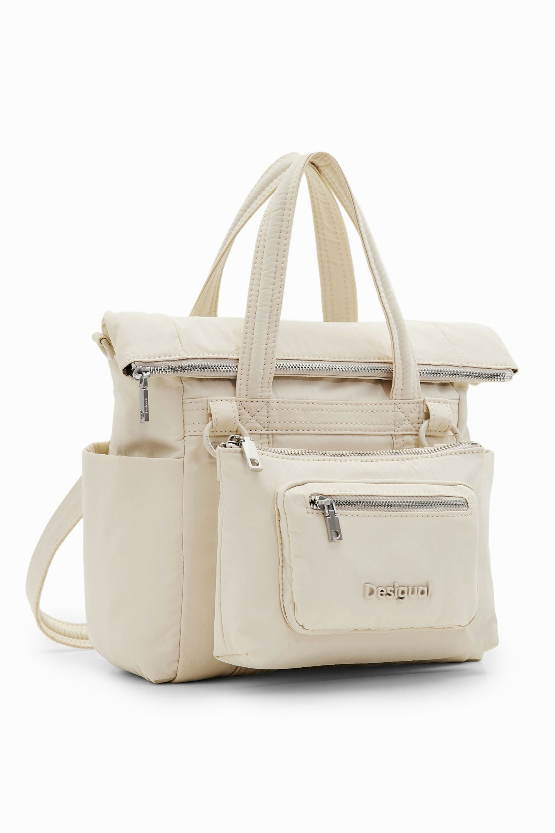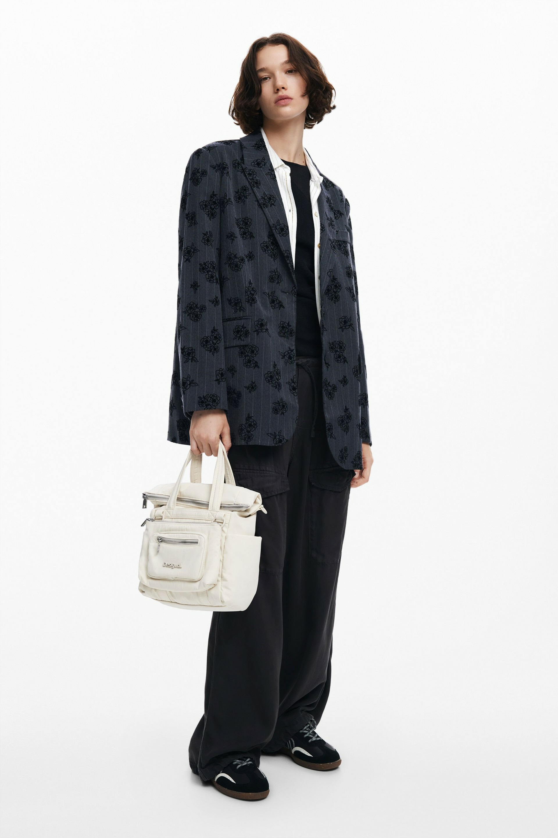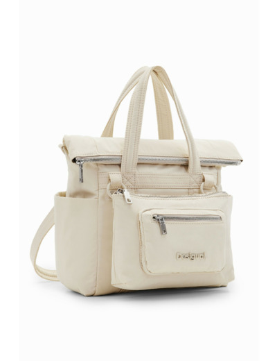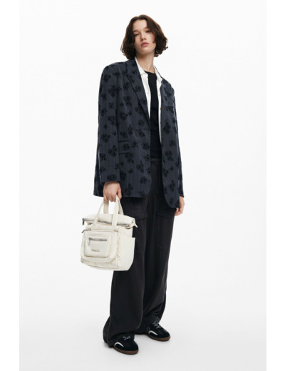 Conçu par Desigual, ce sac mêle une texture tressée sophistiquée à un cuir noir profond, offrant un contraste subtil grâce aux surpiqûres qui soulignent chaque détail. Sa silhouette compacte et épurée s’adapte parfaitement à toutes vos tenues, du bureau à vos sorties urbaines, pour une allure à la fois chic et décontractée.