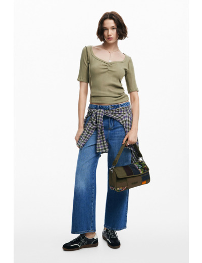 Affirmez votre style avec ce sac à main long au patchwork unique, mêlant textures variées pour un look audacieux et contemporain. Une pièce signée Desigual qui allie originalité et praticité.