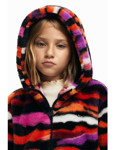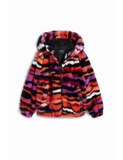 Conçue par Desigual, cette veste se distingue par sa capuche protectrice et sa fermeture éclair pratique, idéale pour un enfilage rapide. Sa doublure intérieure douce assure une chaleur agréable sans alourdir la silhouette, tandis que le mélange de couleurs vives et le motif animalier apportent une touche de modernité et d’originalité à votre look.