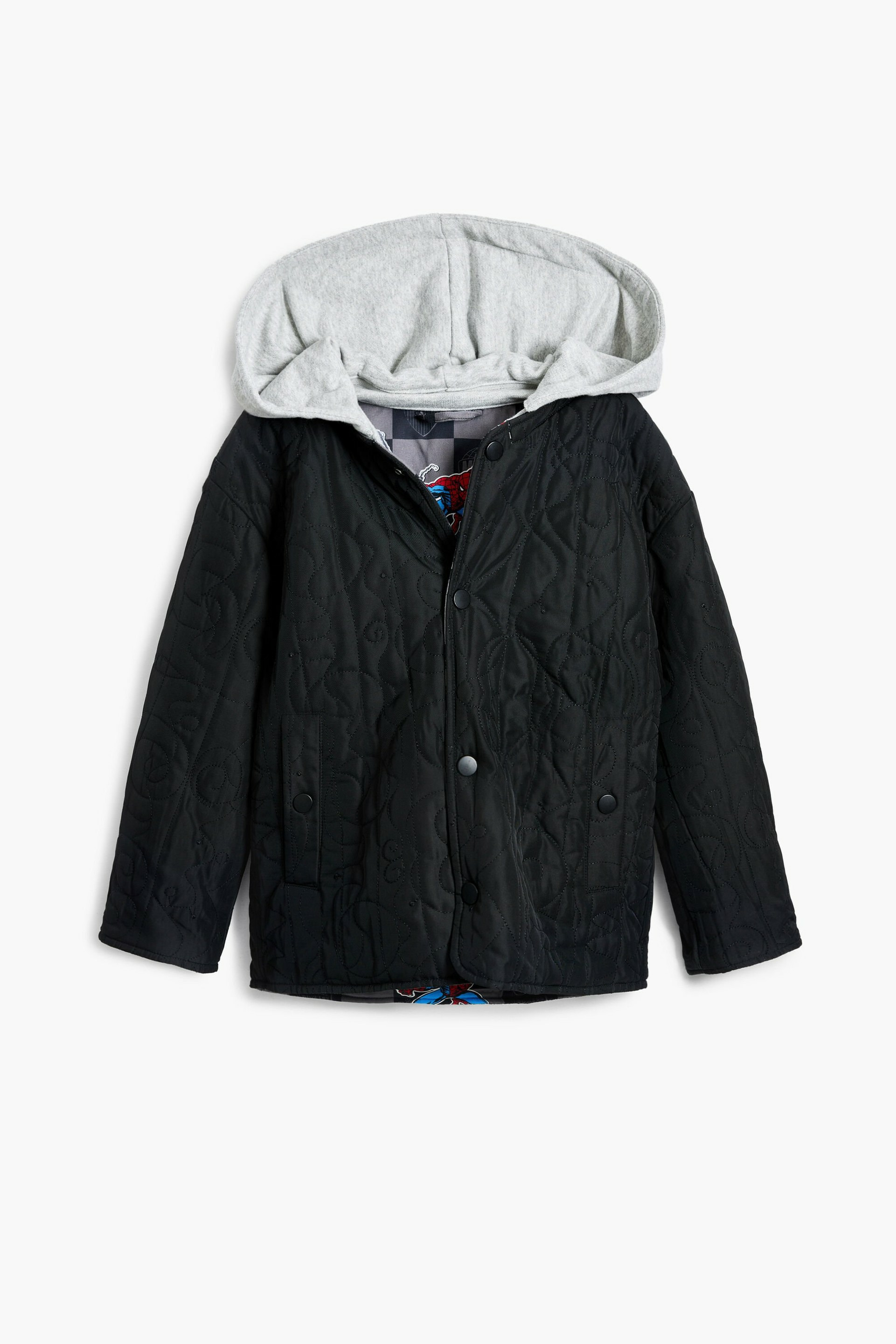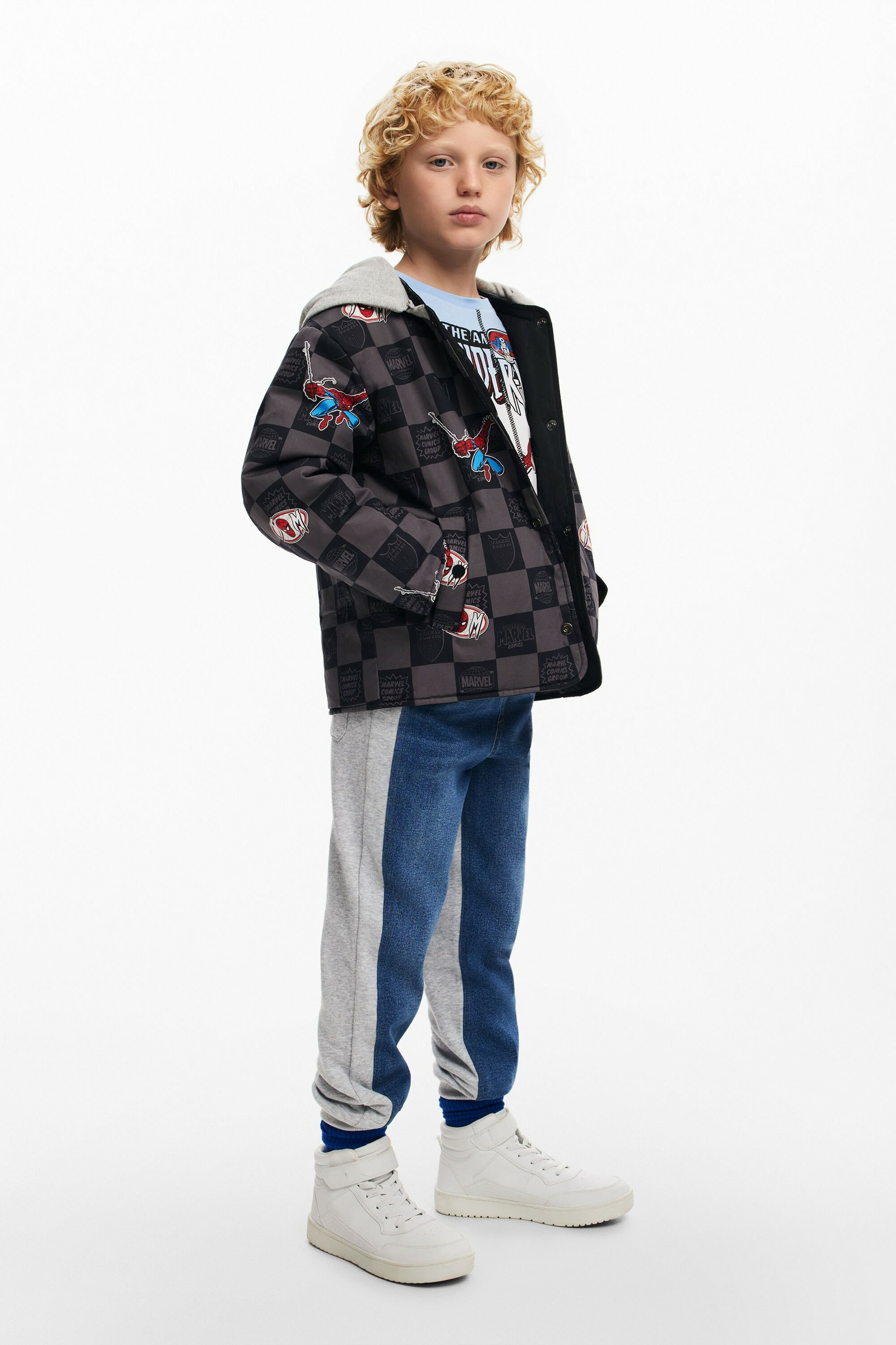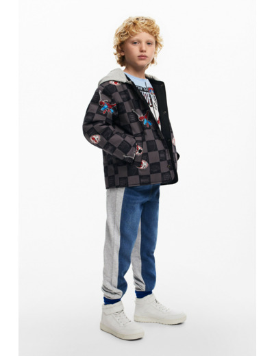 Lavage en machine à froid à l’envers, cycle très délicat. Blouson court réversible avec capuche, imprimé à carreaux d’un côté et Spiderman de l’autre. Licence officielle Marvel™. Marque Desigual.