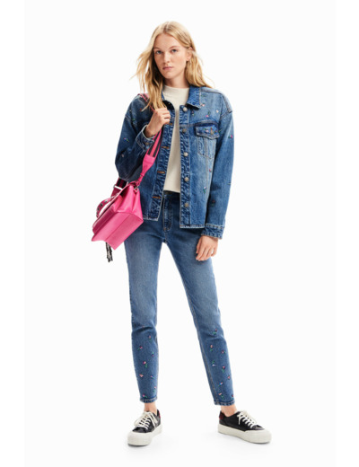 Fabriqué par Desigual, ce jean se lave en machine à froid pour préserver la qualité des broderies et la tenue du tissu. Sa composition et son entretien facile en font un allié durable de votre garde-robe.