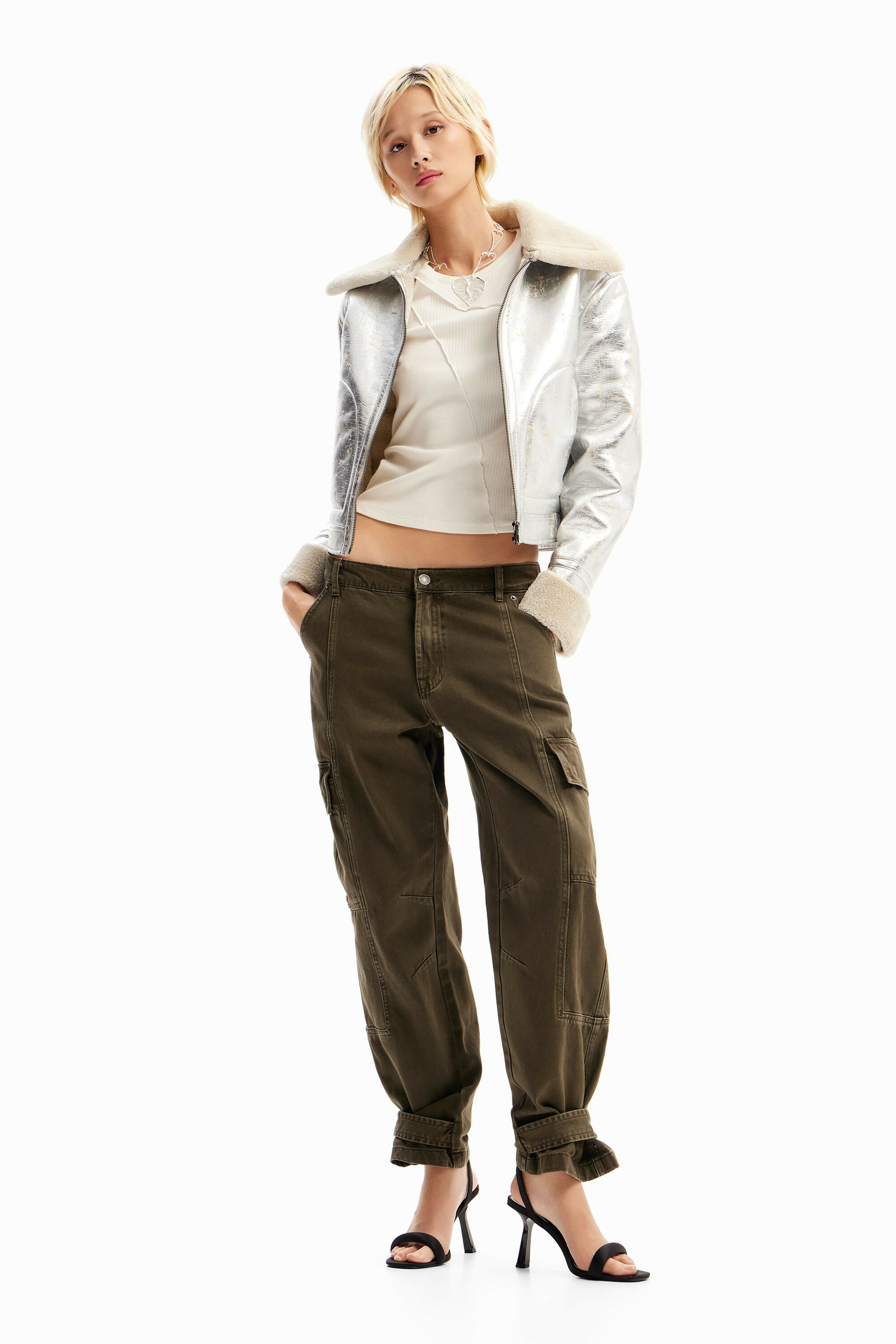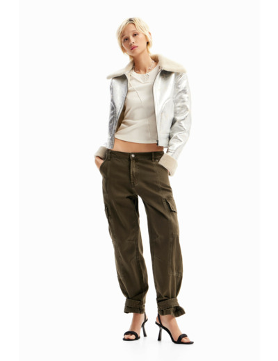 Brillez avec audace grâce à cette veste argentée effet métallisé, sublimée par une doublure en mouton pour un confort inégalé. La nouvelle collection Femme SS24 Desigual réinvente le manteau avec une touche futuriste et chaleureuse.