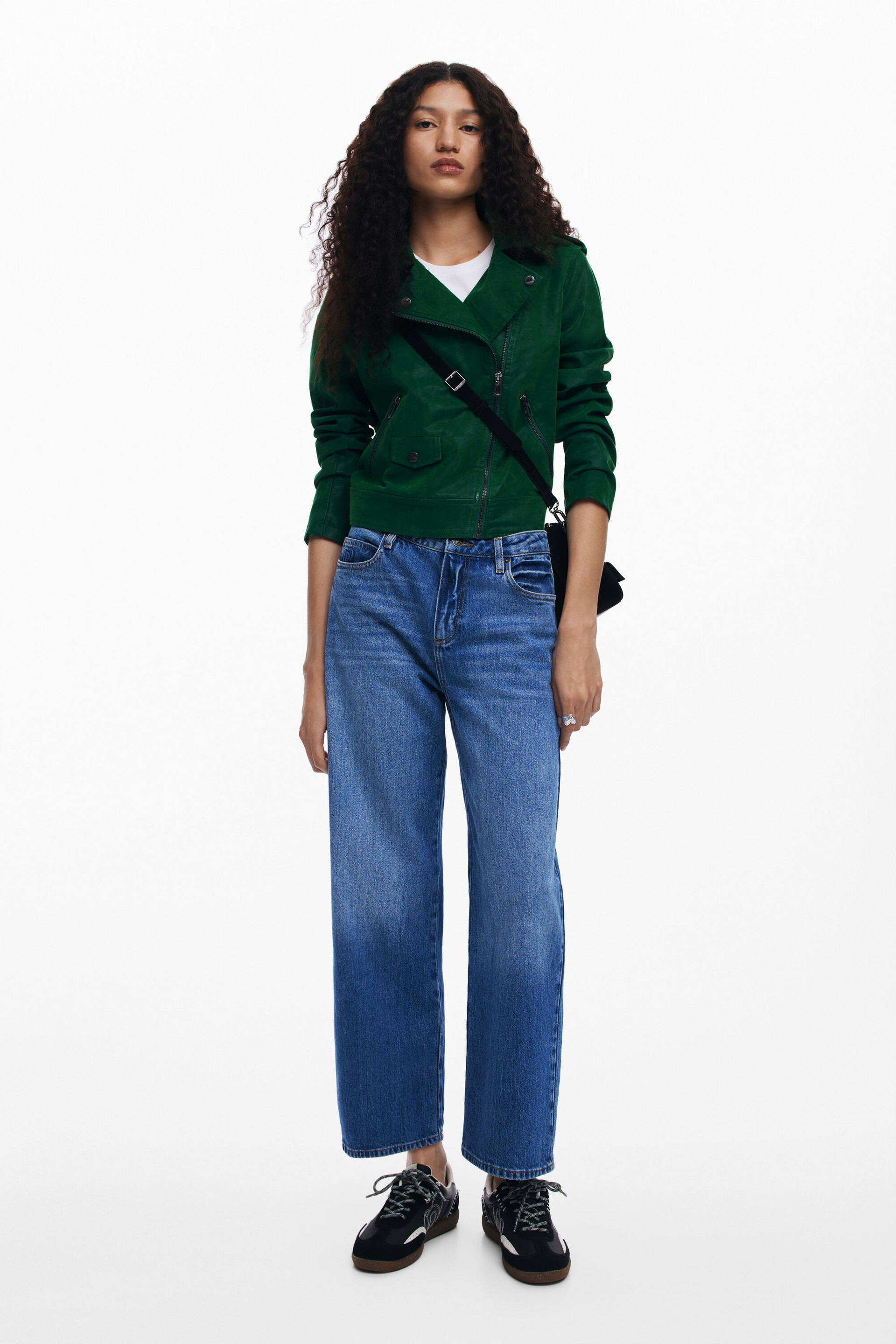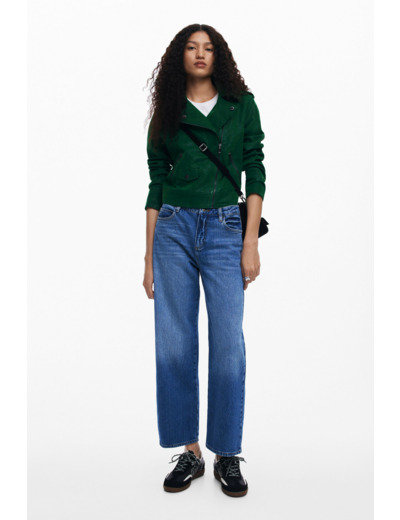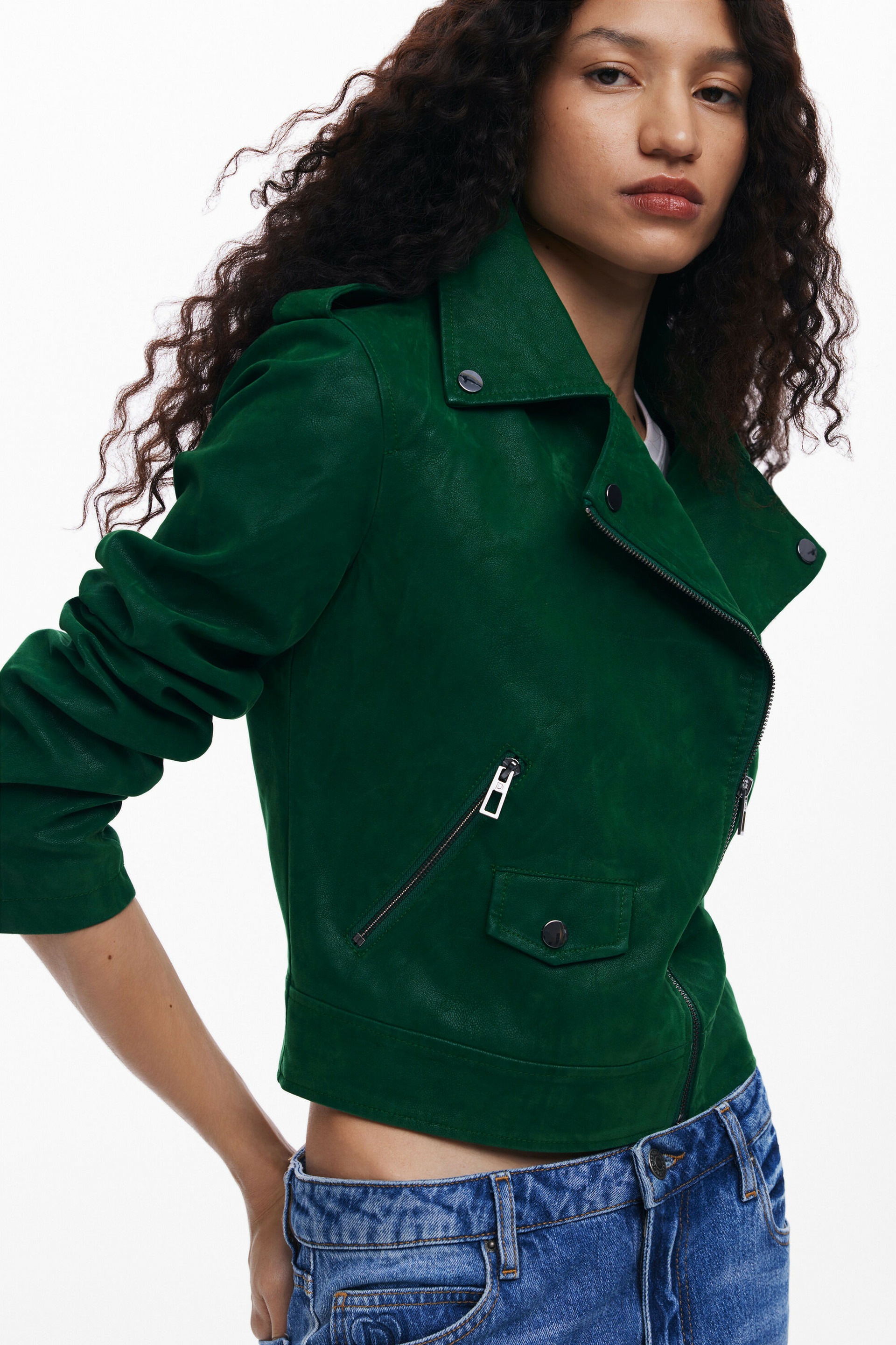 Affirmez votre style avec cette veste de motard en tissu effet cuir vert, alliant audace et douceur pour une allure résolument contemporaine. Intégrez la nouvelle collection Femme SS24 Desigual et révélez votre personnalité unique.