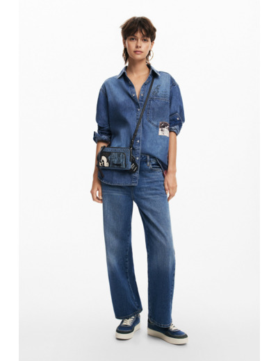 Alliez style urbain et esprit pop avec ce porte-monnaie unique signé Desigual. Son mélange audacieux de tissu effet cuir et denim, rehaussé par un patch Mickey Mouse iconique, affirme votre personnalité à chaque ouverture.