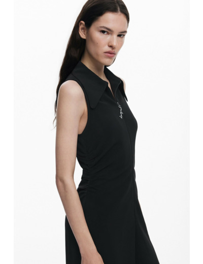 Profitez d’un vêtement polyvalent qui valorise votre morphologie tout en facilitant l’habillage grâce à sa fermeture éclair frontale. Les fronces latérales affinent la taille et ajoutent du mouvement, tandis que le col de chemise structuré équilibre parfaitement le look.
