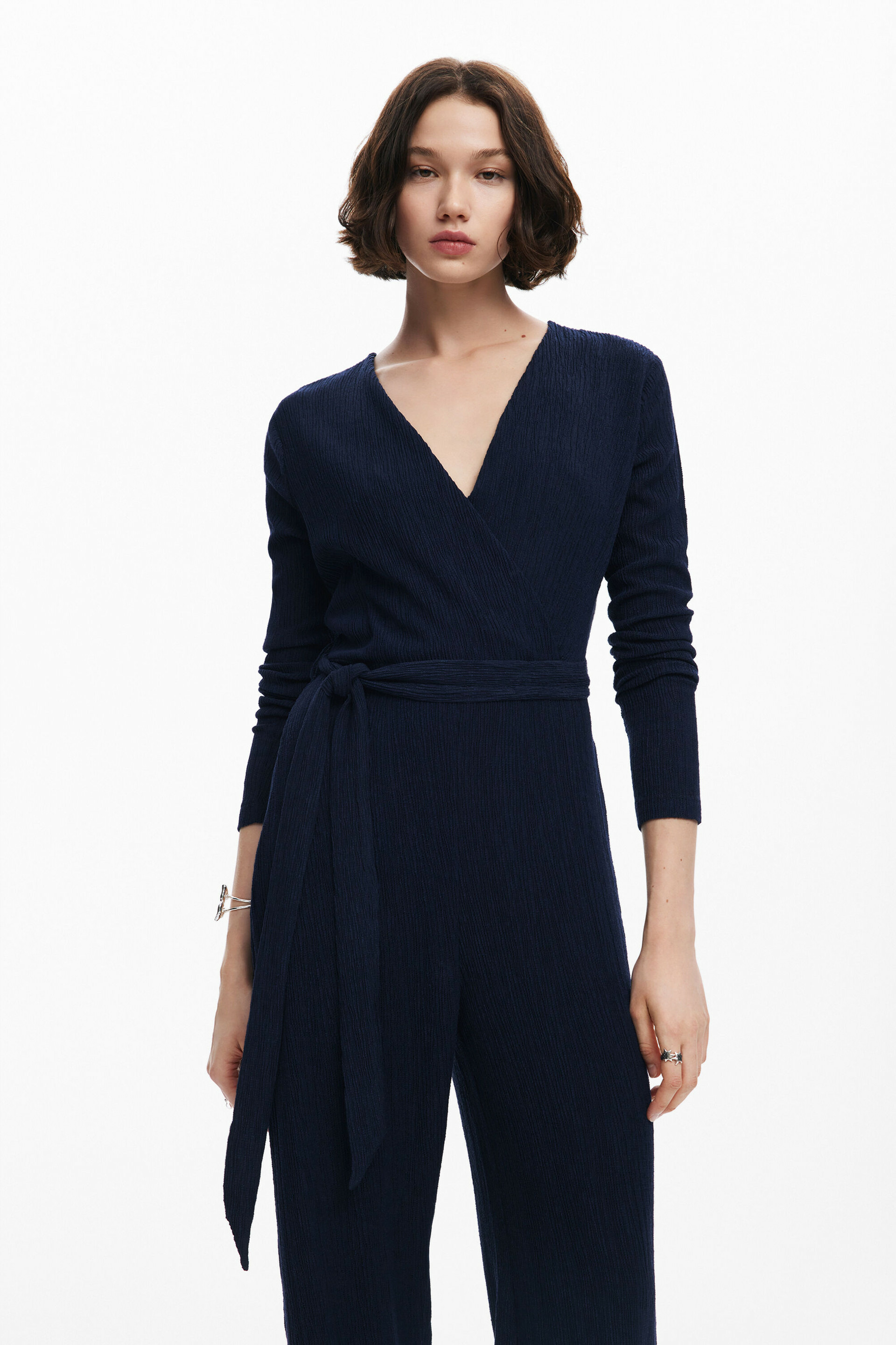 Lavage en machine à l’eau froide. Combinaison longue à manches longues, col en V, fermeture par ceinture à la taille. Marque Desigual. Catégorie : Overall Trousers.