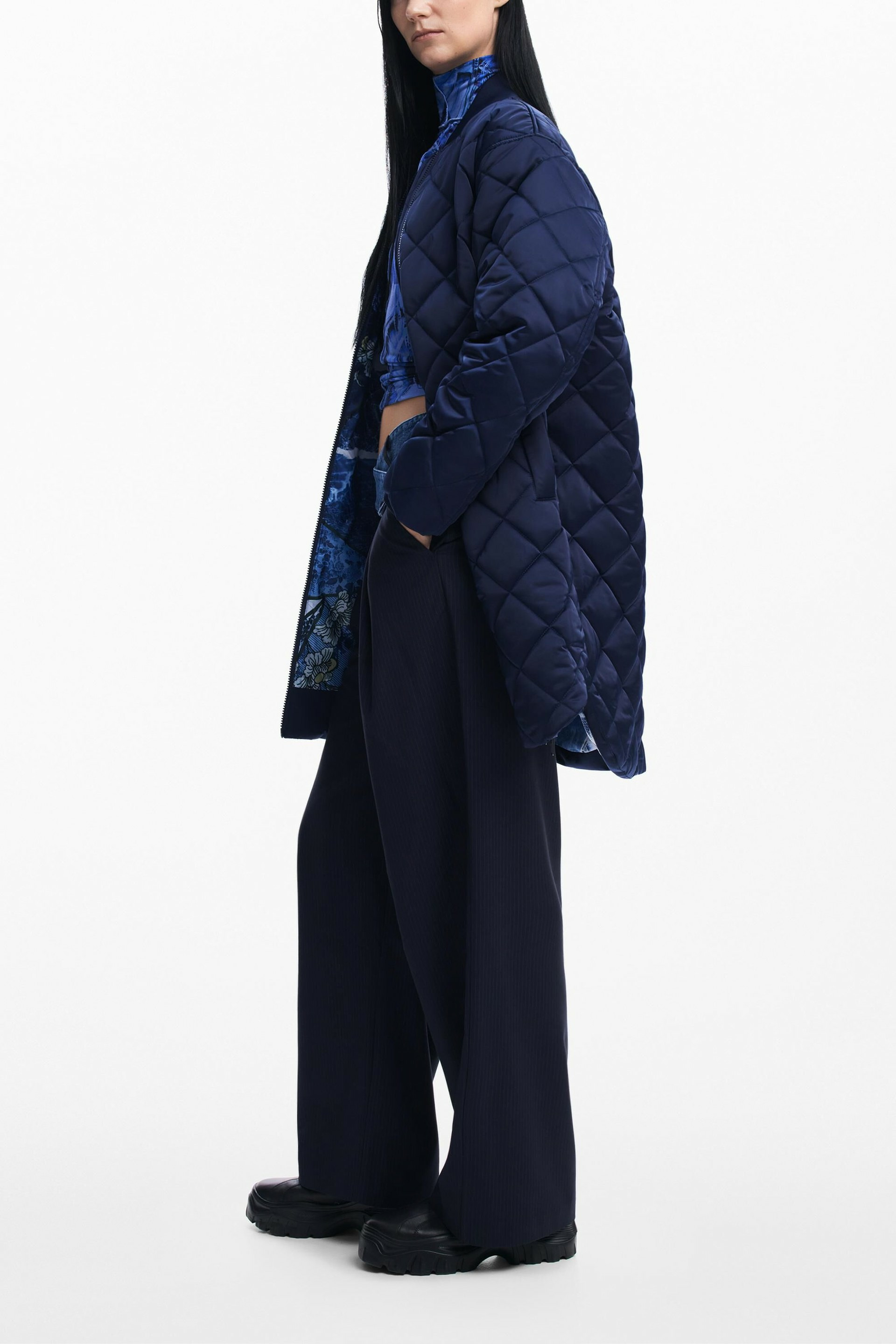 Manteau long matelassé oversize avec fermeture éclair. Lavage en machine à froid à l’envers, cycle très délicat. Marque Desigual. Catégorie PADDED LONG OVERCOAT.