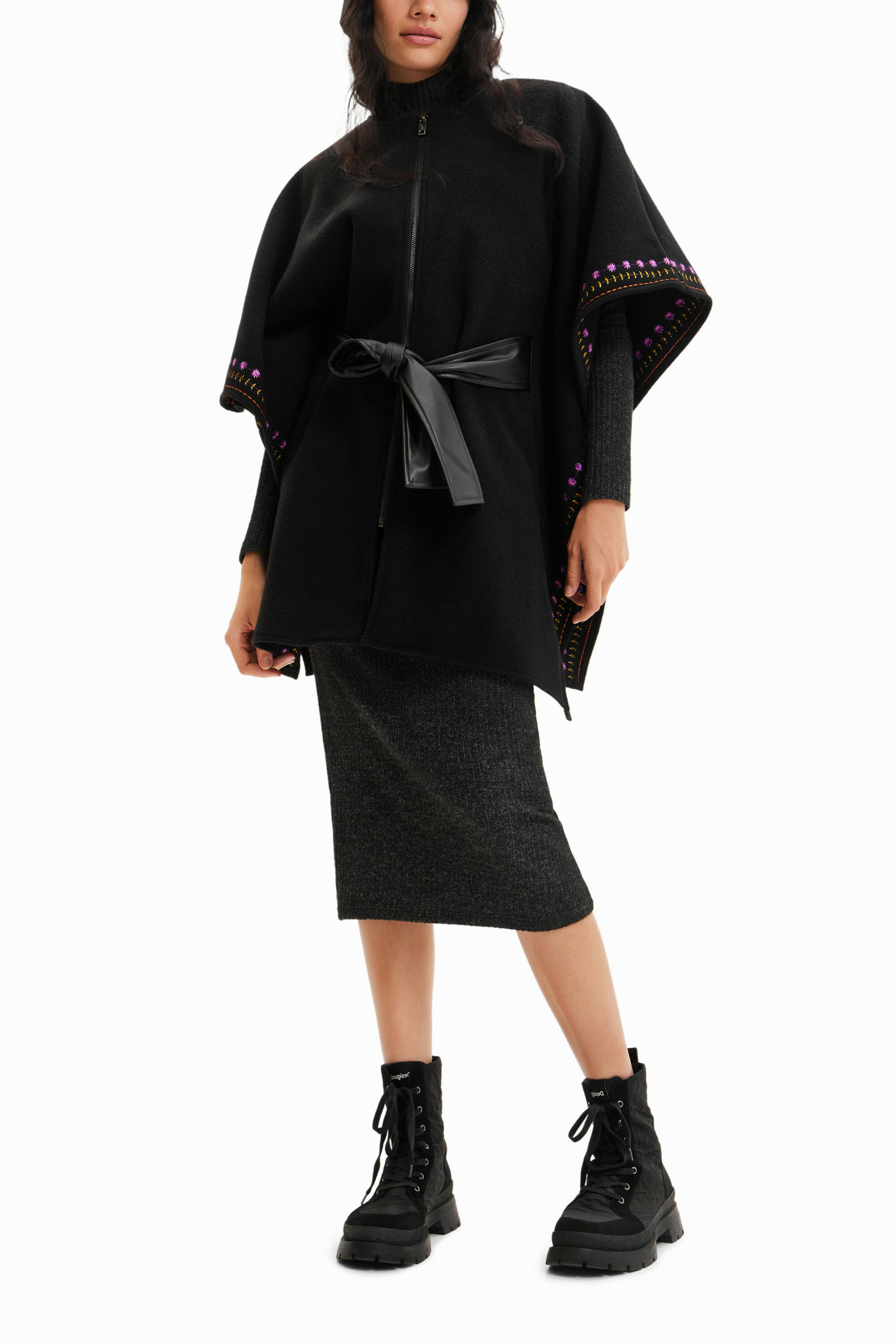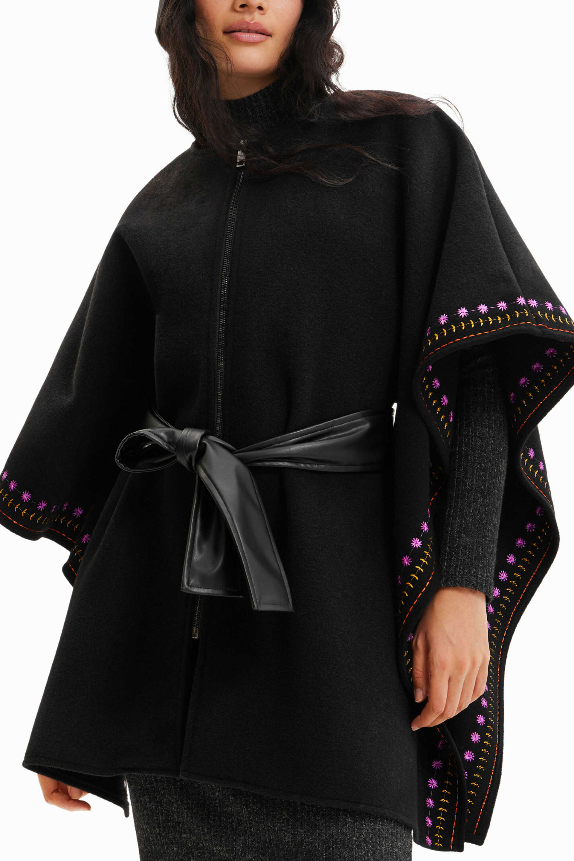 Confectionné pour allier confort et esthétique, ce poncho se distingue par sa fermeture éclair pratique et sa ceinture en simili-cuir qui souligne la silhouette. Léger et fluide, il s’adapte parfaitement à vos envies, que ce soit pour une sortie décontractée ou une occasion plus habillée. La broderie colorée apporte une note artisanale qui fait toute la différence.