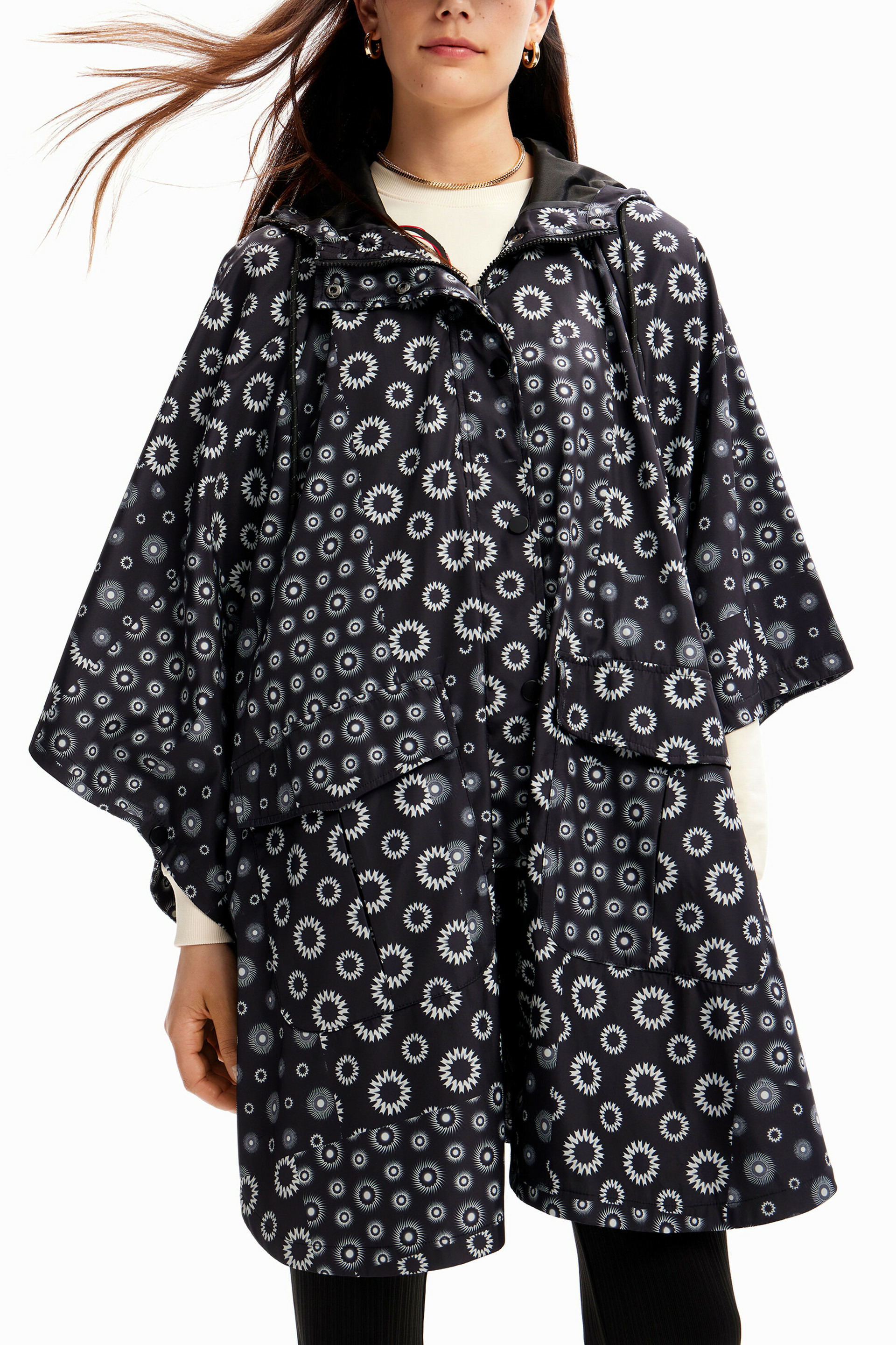 Affrontez la pluie avec style grâce à cet imperméable oversize au design poncho, alliant légèreté et modernité. Son imprimé géométrique New Heritage apporte une touche contemporaine à votre tenue, tout en vous protégeant efficacement.