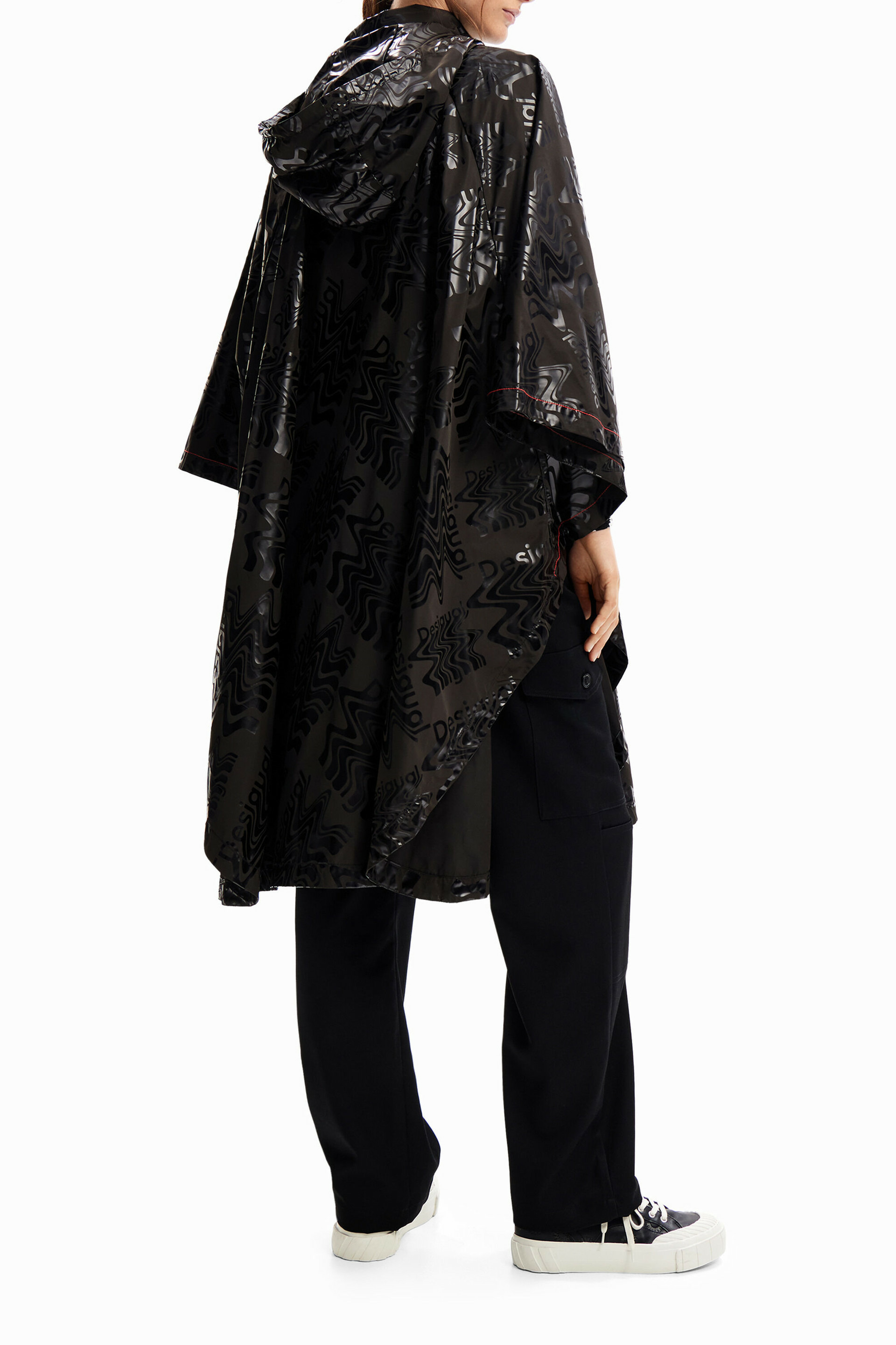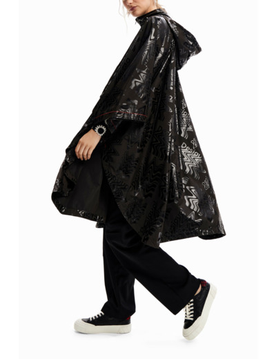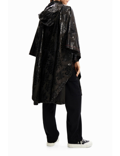 Imperméable oversize de style poncho avec capuche, doté de poches latérales, ceinture réglable à la taille, surpiqûres contrastantes et imprimé logos effet satiné. Entretien conseillé : lavage à la main.