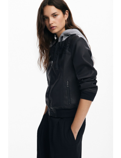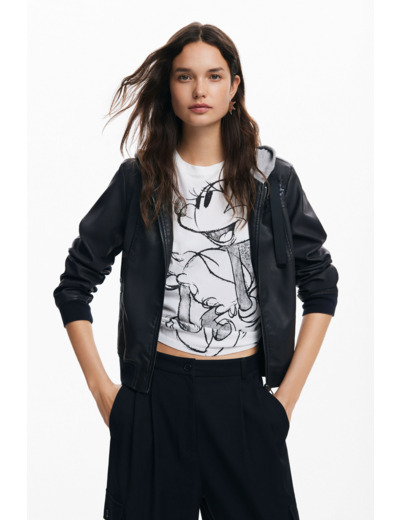 Lavage en machine à froid à l’envers, cycle délicat. Composition : polyuréthane (PU) pour un effet cuir moderne, doublure textile pour plus de confort. Fermeture éclair intégrale, capuche fixe, imprimé Mickey Mouse sur l’ensemble.