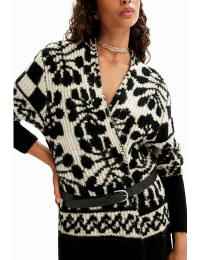 Adoptez une allure décontractée et sophistiquée avec ce long cardigan oversize signé Desigual. Son design bicolore texturé et ses formes organiques apportent une touche d’originalité à votre dressing.