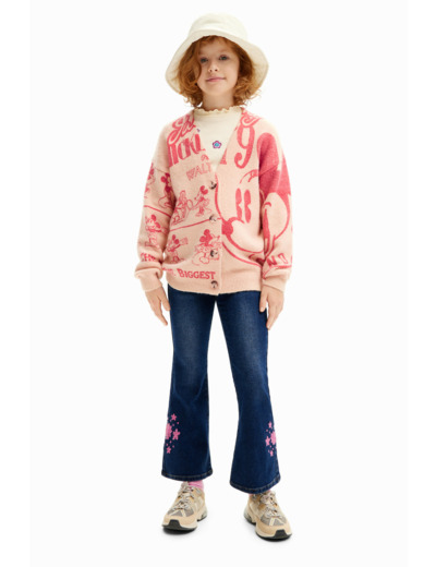 Lavage à la main recommandé pour préserver la qualité et la douceur de la maille. Cardigan oversize en maille fine, manches longues, fermeture à boutons Mickey Mouse, marque Desigual.