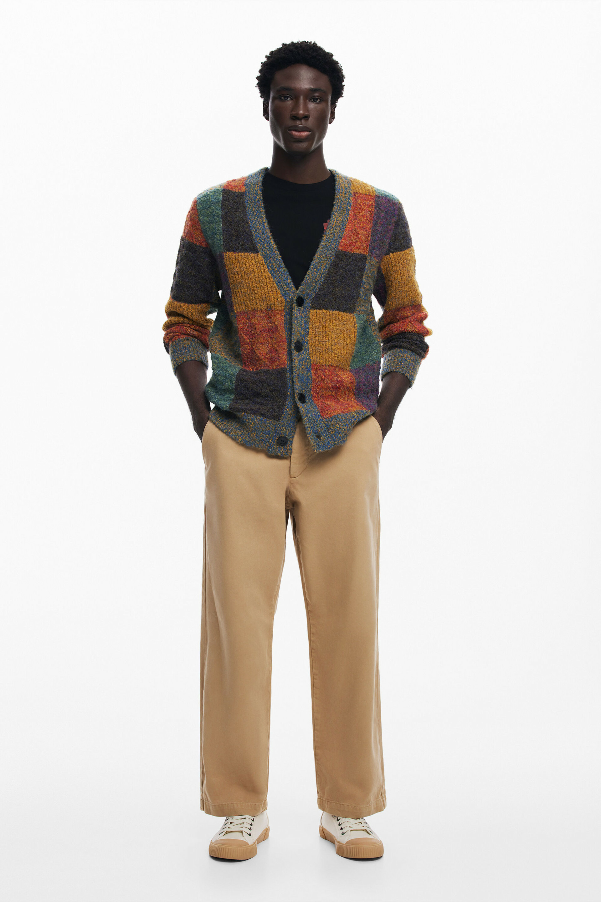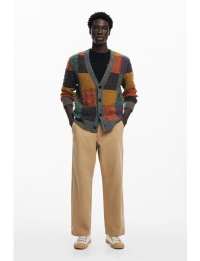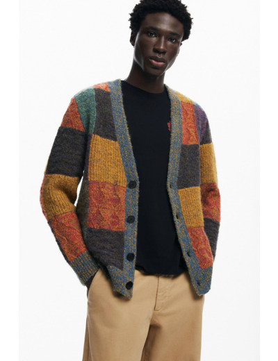 Adoptez l’élégance décontractée avec ce cardigan en maille à motif à carreaux, signé Desigual. Une pièce unique qui allie style graphique et confort absolu pour sublimer vos looks au quotidien.
