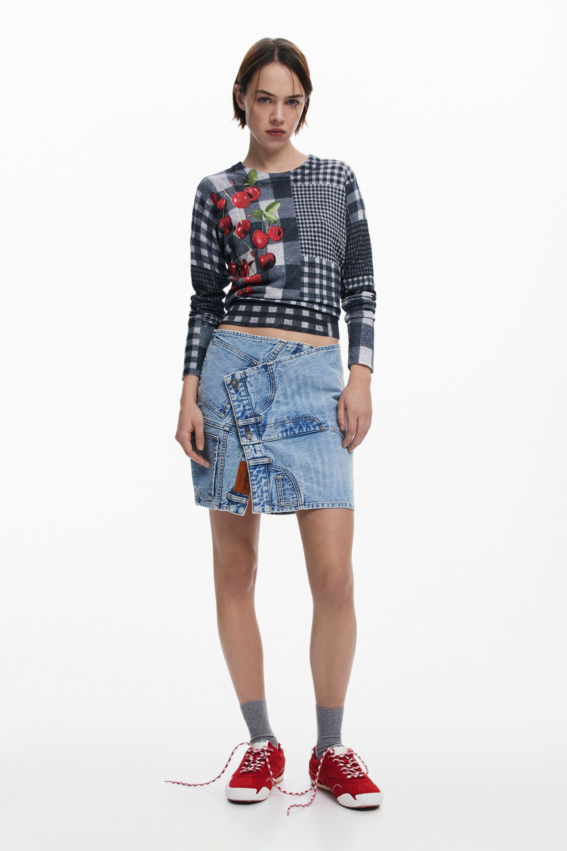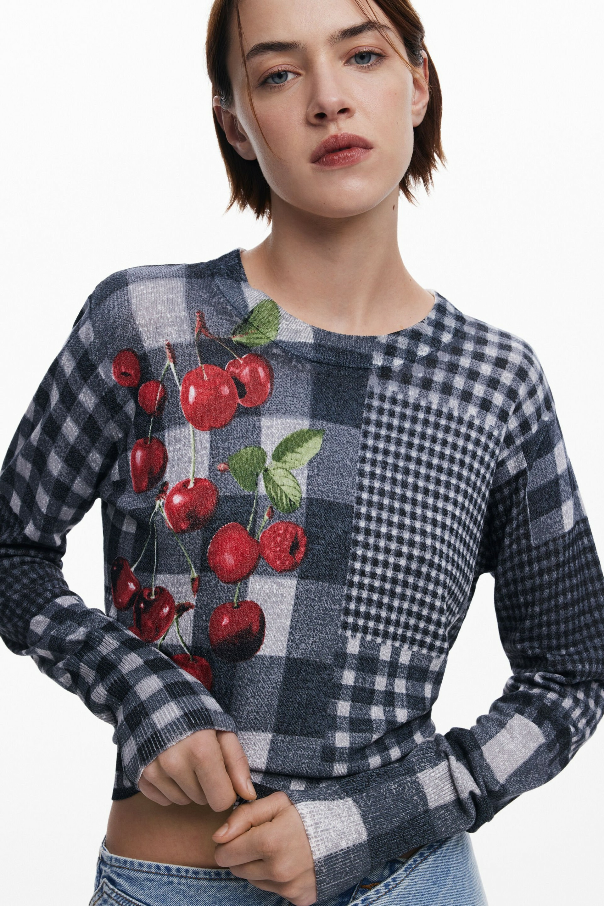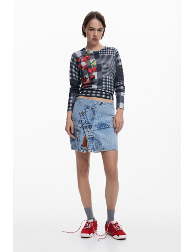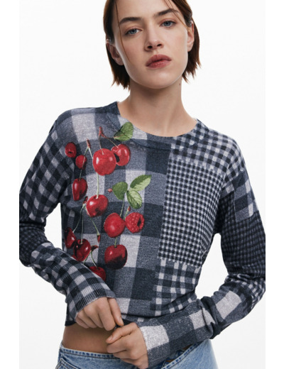 Adoptez l’audace du motif vichy revisité avec ce pull à manches longues signé Desigual, où le col montant apporte une touche de sophistication moderne. L’imprimé fruits et carreaux de différentes tailles dynamise votre look avec fraîcheur et originalité.