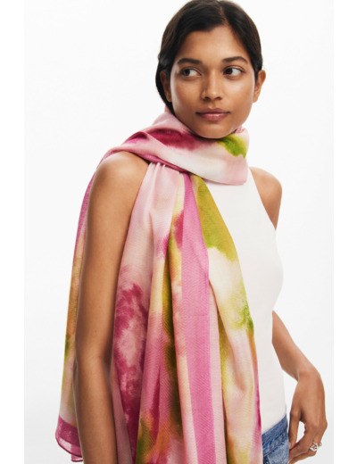 Apportez une touche d’élégance artistique à votre tenue avec ce foulard rectangulaire au motif aquarelle estompé. Sa douceur enveloppante sublime chaque mouvement avec délicatesse.