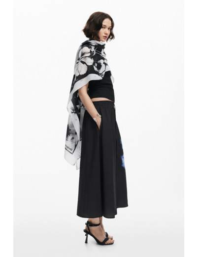 Sublimez votre tenue avec ce foulard rectangulaire au charme intemporel, où l’élégance du noir et blanc rencontre un imprimé floral délicat. Un accessoire qui transforme chaque look en une déclaration de style raffinée.
