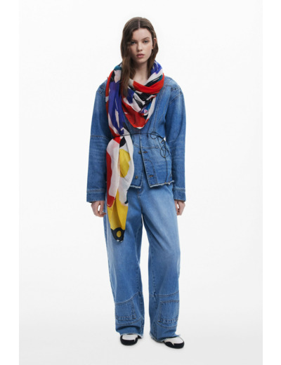 La fiche produit ne précise pas la matière exacte, mais le tissu est léger et fluide, typique des foulards Desigual.