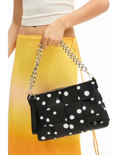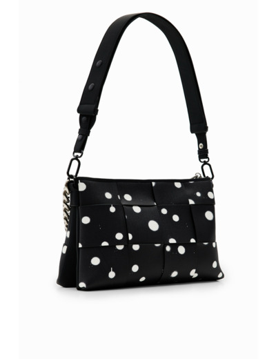 Affirmez votre style avec ce sac à bandoulière tressé noir, sublimé par un imprimé gouttes unique. Un accessoire audacieux qui réinvente l’élégance urbaine pour la saison SS24.