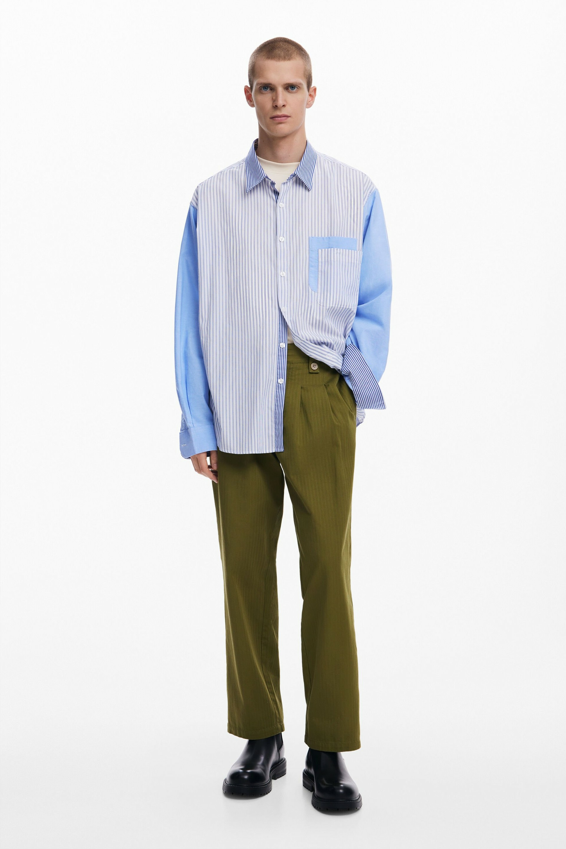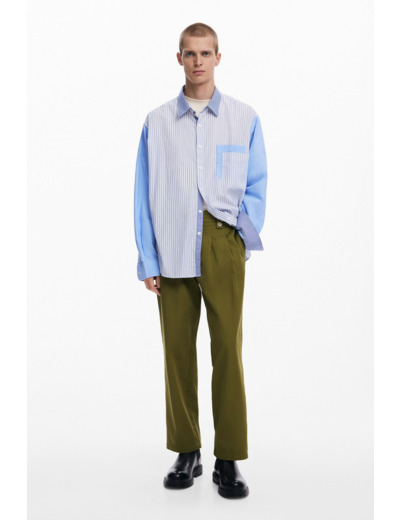Conçue par Desigual, cette chemise combine originalité et fonctionnalité. Son patchwork de rayures apporte une touche graphique tandis que ses deux poches avant renforcent son côté pratique. La fermeture à boutons ajoute une finition soignée, idéale pour un port facile et ajusté. Polyvalente, elle s’adapte aussi bien à une tenue casual qu’à un look plus travaillé.