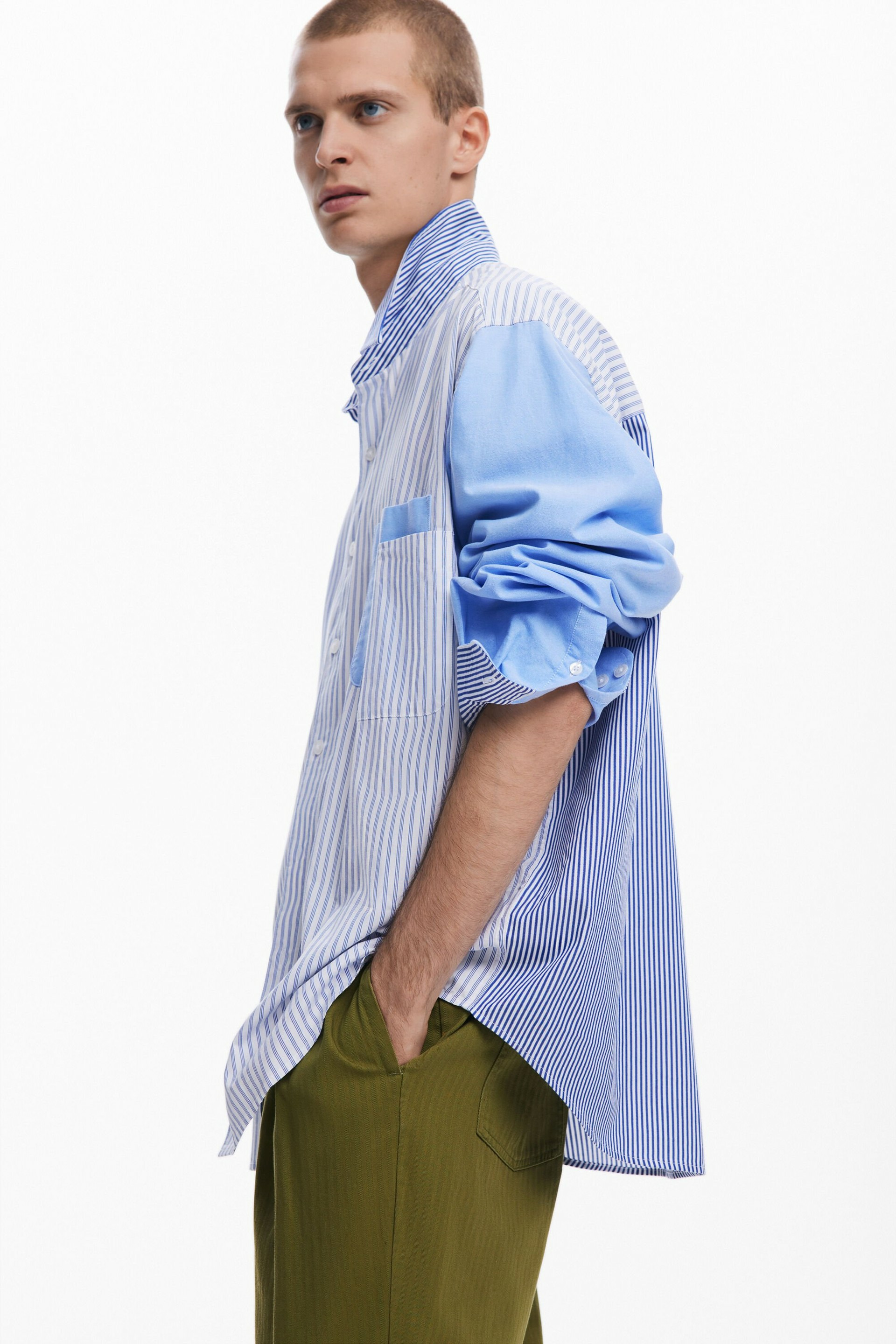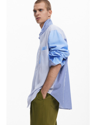 Affirmez votre style avec cette chemise à manches longues au design patchwork unique, sublimée par un imprimé rayé dynamique. Une pièce audacieuse qui réinvente les classiques pour un look moderne et affirmé.