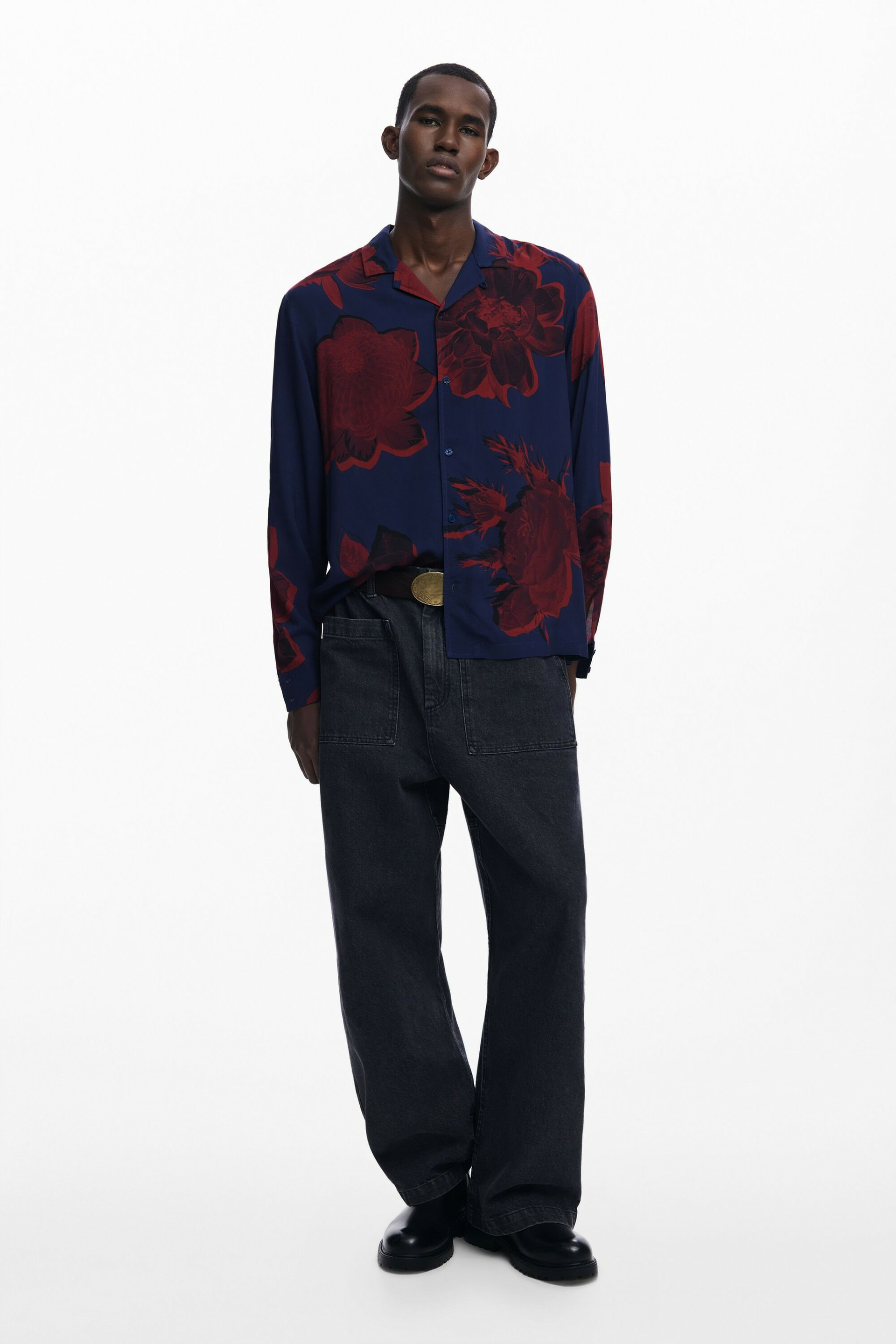Cette chemise est-elle facile à associer ? Oui, son imprimé floral contrasté se marie aisément avec des bas unis pour un style équilibré.