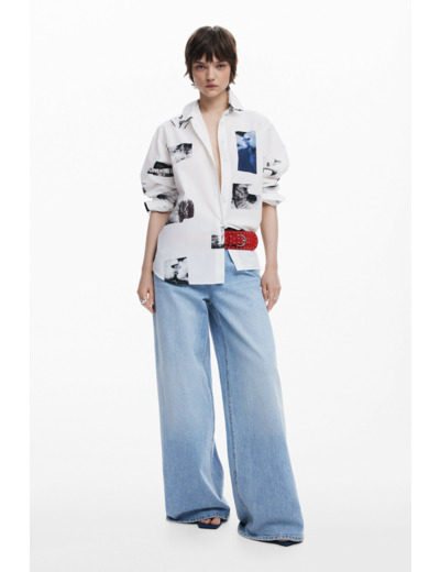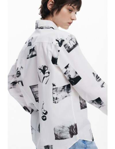 Affichez un style unique avec cette chemise à manches longues en coton 100%, alliant confort et audace graphique. Son imprimé collage de photographies sur fond uni apporte une touche artistique à votre garde-robe.