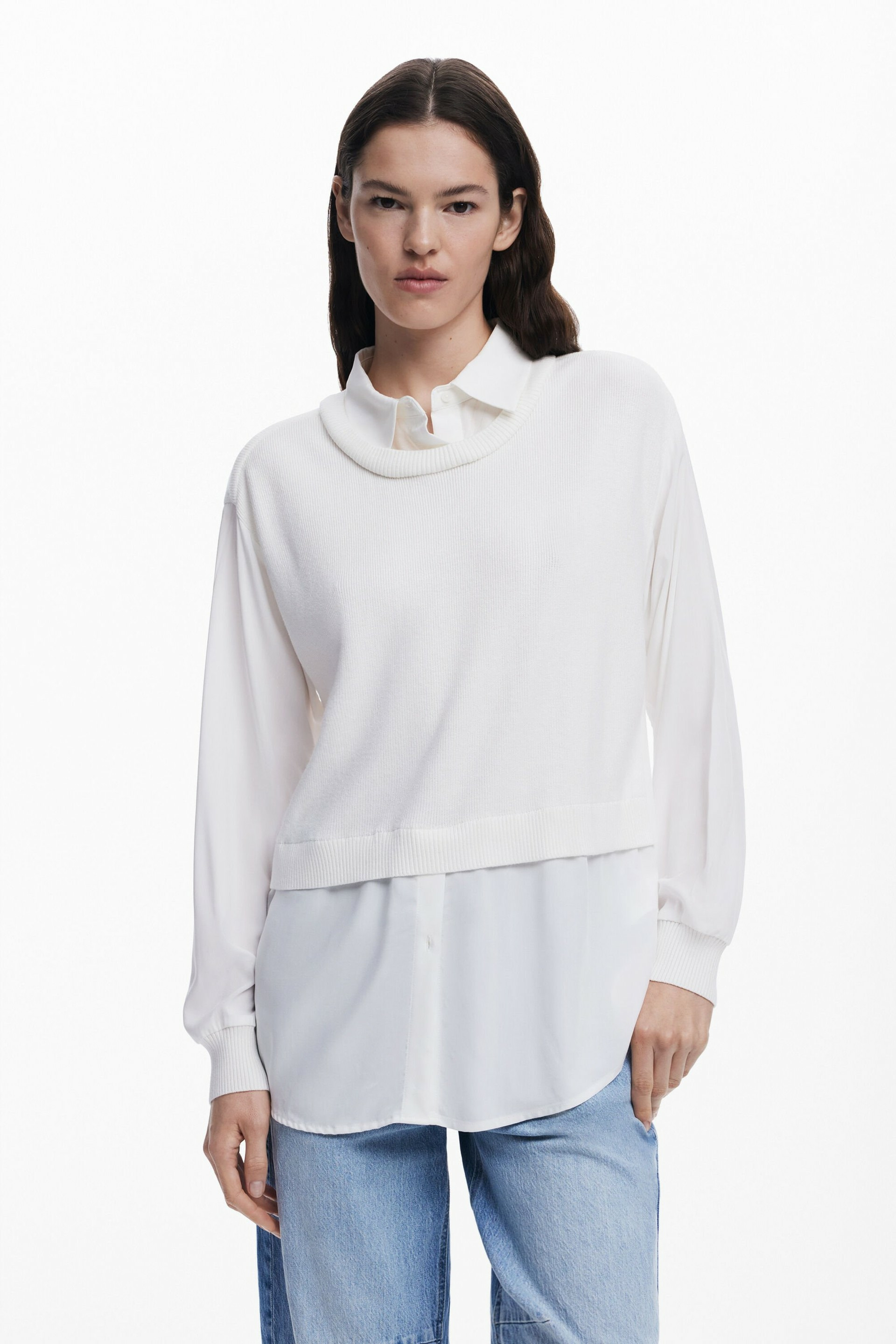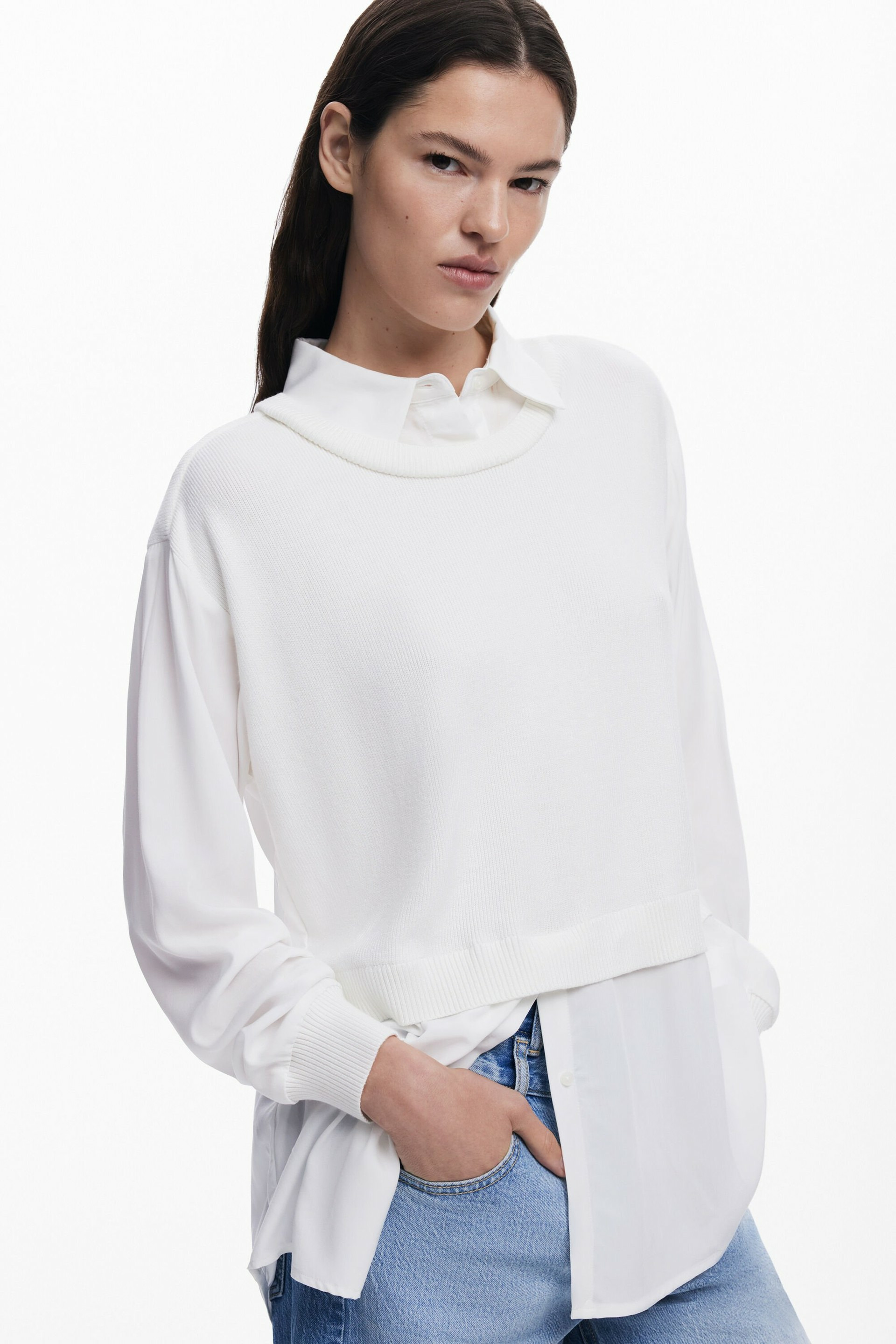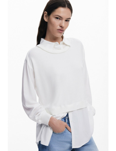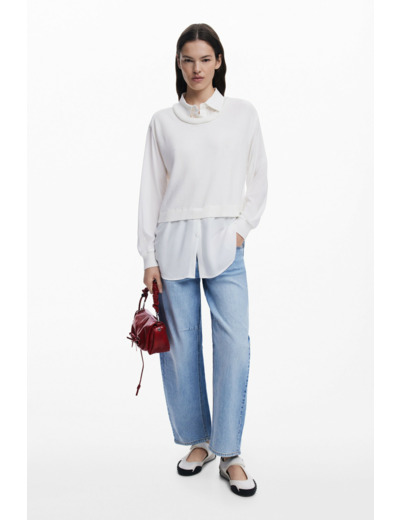 Affirmez votre style avec cette chemise à manches longues alliant décontraction et originalité. Son effet de superposition de gilet en maille sur le devant apporte une touche unique et moderne à une pièce essentielle.