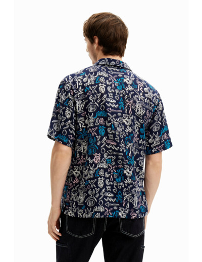 Affirmez votre style avec cette chemise à manches courtes au col classique, sublimée par un motif d’illustrations contrastées qui capte le regard. Une pièce audacieuse pour dynamiser vos tenues estivales avec élégance.