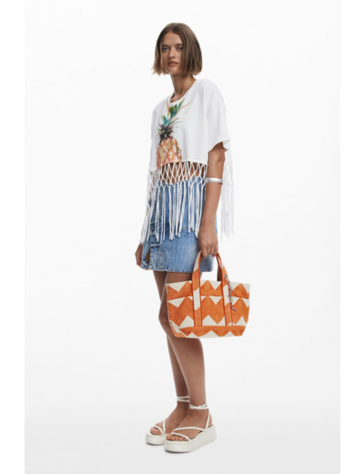 Conçu pour accompagner toutes vos envies, ce sac shopping Desigual combine robustesse et légèreté. Ses anses fixes assurent un porté confortable tandis que les compartiments extérieurs facilitent l’organisation de vos essentiels. Le porte-clés amovible ajoute une touche graphique et personnalisable à votre look.