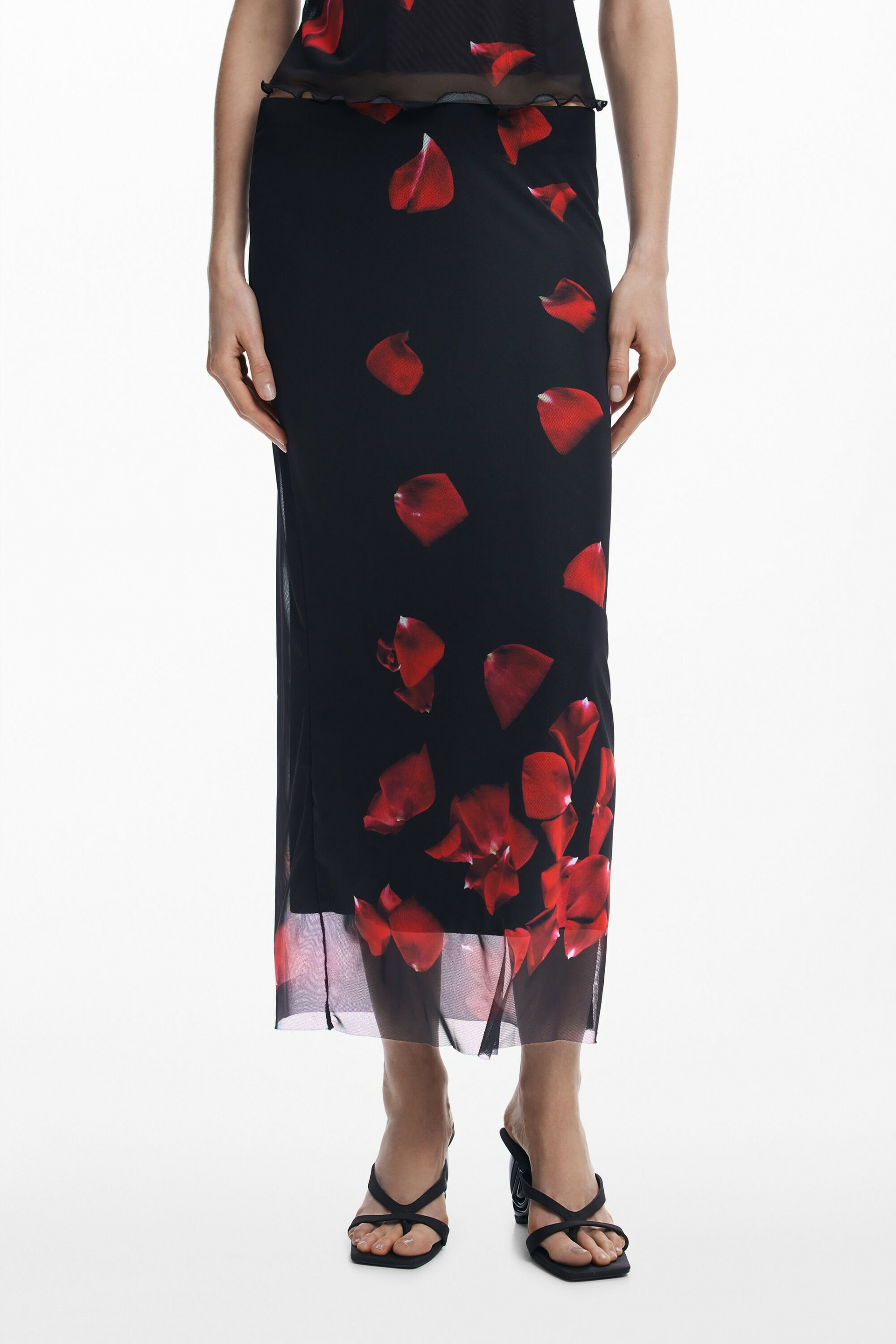 Sublimez votre silhouette avec cette jupe midi signée Tyler McGillivary, où la douceur d’un imprimé pétales de rose rencontre une coupe fluide et moderne. Une pièce unique qui allie confort et élégance au quotidien.