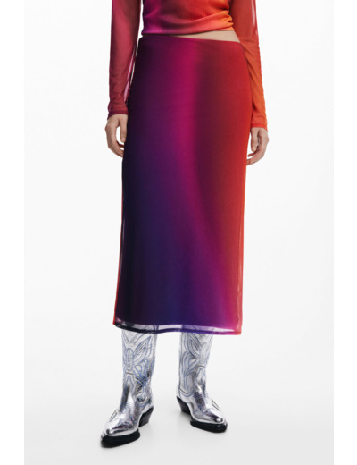 Sublimez votre silhouette avec cette jupe crayon aux tons dégradés, élégamment soulignée par une fente arrière qui allie confort et allure. Une pièce Desigual qui transforme chaque mouvement en une déclaration de style affirmé.