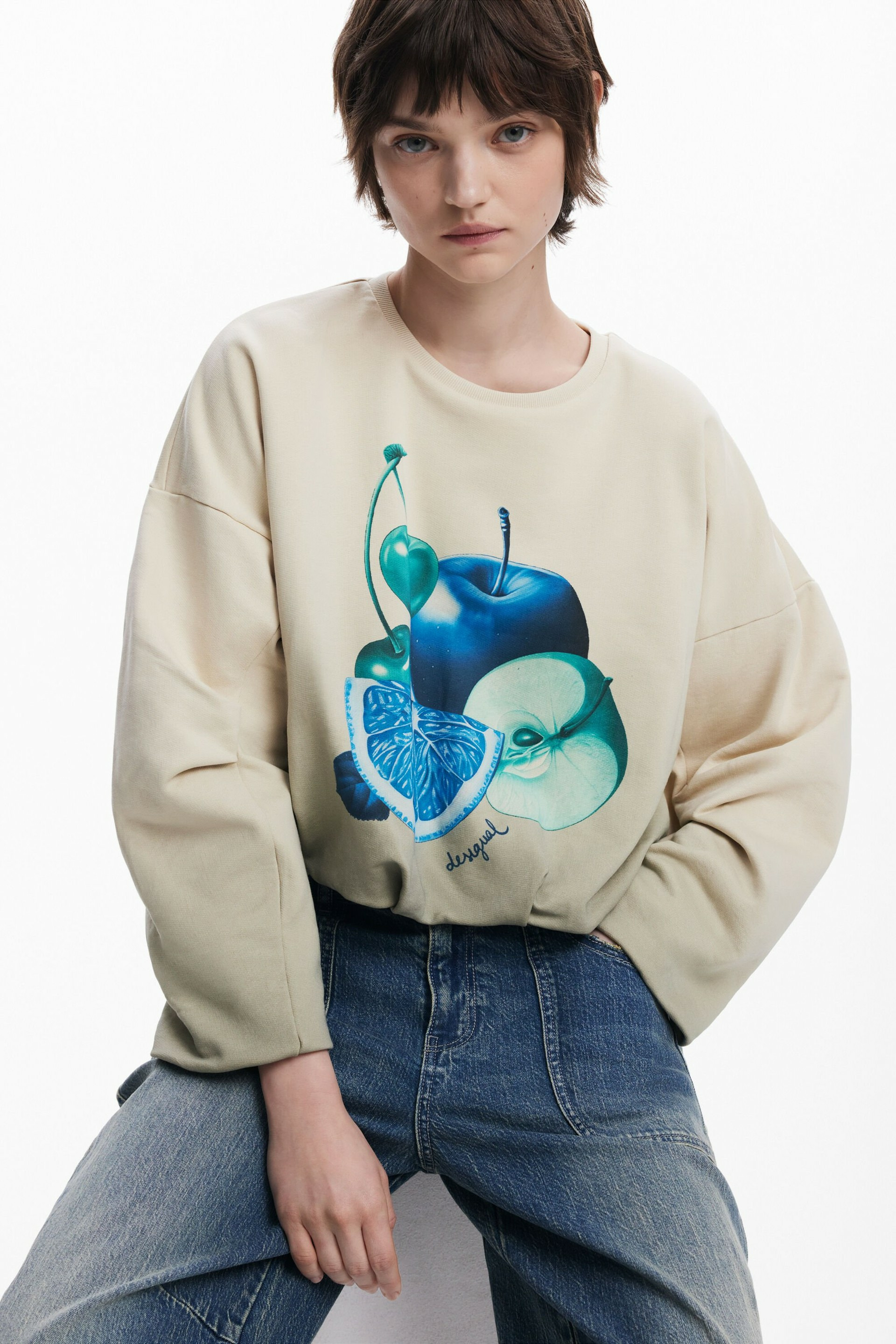 Affirmez votre style avec ce sweat-shirt à col rond, où volume et imprimé nature morte s’allient pour un look à la fois audacieux et raffiné. Une pièce unique qui transforme une silhouette classique en une déclaration mode contemporaine.
