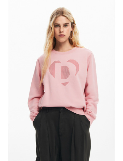 Affichez un style unique avec ce sweat en coton à manches longues signé Desigual, où confort et éclat se rencontrent. Son imprimé distinctif de la lettre D dans un cœur de détails brillants apporte une touche d’audace à votre tenue.