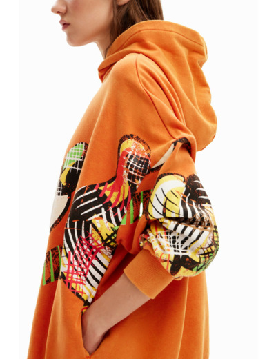Affiche ton style avec ce sweat-shirt à capuche rose signé Desigual, sublimé par un imprimé Mickey Mouse iconique. Une pièce unique qui allie confort et audace pour une allure résolument moderne.
