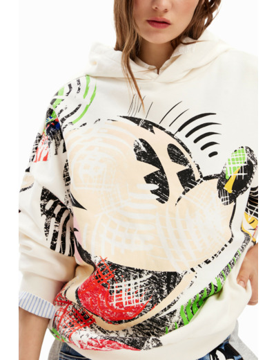 Affiche ton style avec ce sweat-shirt à capuche blanc orné d’un imprimé Mickey Mouse iconique. Une pièce incontournable de la nouvelle collection Femme SS24 Desigual, alliant confort et originalité.